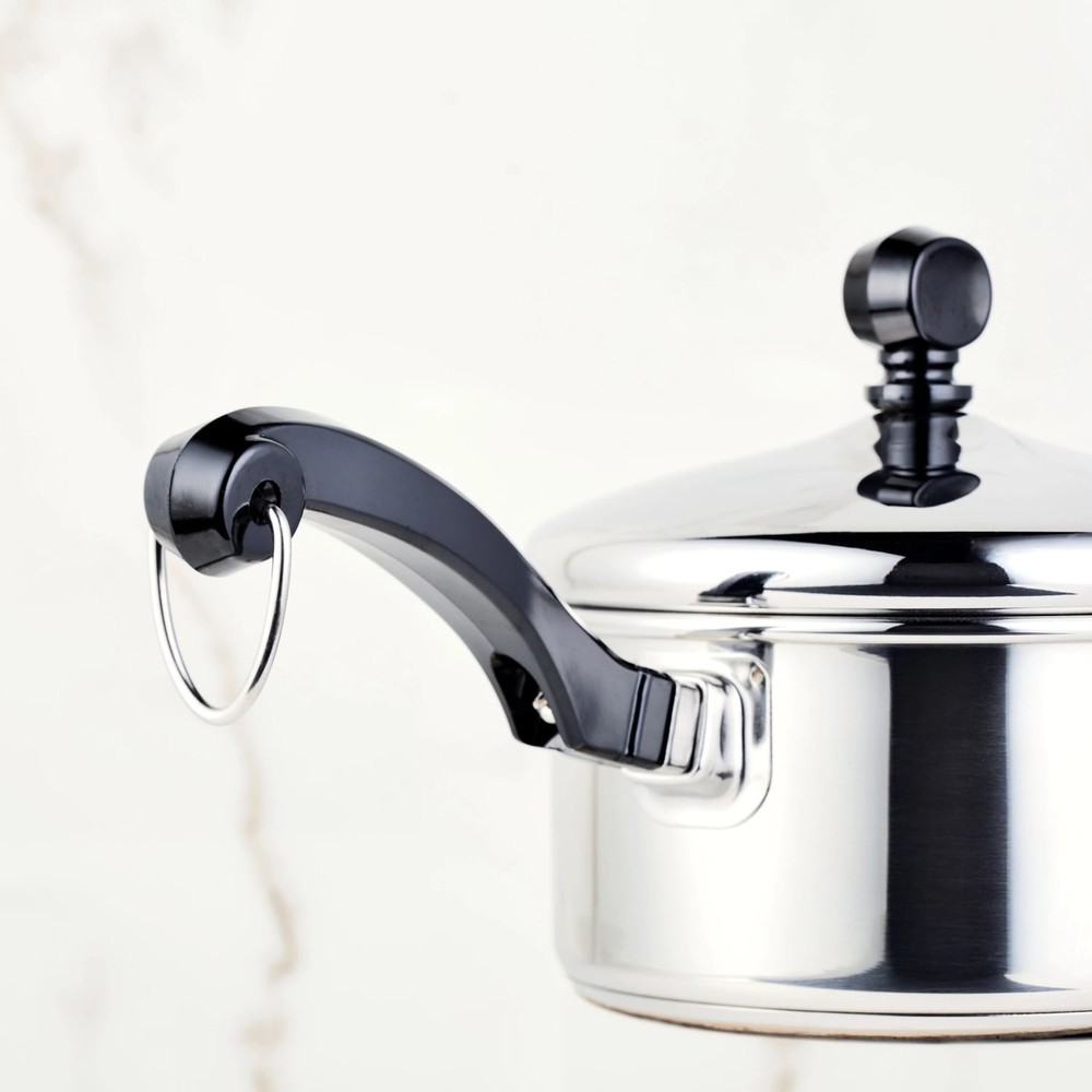 Enjoy Rapid Heating with Time-Tested Pan Made by a century old company, this classic stainless steel saucepan heats quickly and evenly with a thick aluminum core base surrounded by heavy-duty stainless steel. Cook a variety of foods from breakfast oatmeal to chocolate sauce for dessert. When you're done, just place the pan in the dishwasher for easy cleanup. Part of the Farberware Classic Series collection. Extra-durable, edge-to-edge base is engineered for even heating. Included self-basting lid helps seal in heat and moisture for flavorful meals. Comfortable handle with iconic styling provides a confident grasp. Mirror-finished exterior provides a classic touch. Holds 1 qt. Oven safe to 350 degrees F. Dishwasher safe. Capacity: 1 Quart. Dimensions: 11.2"D x 6.3"W x 4.4"H Visit Our Store Contact Us Farberware Classic Stainless Steel Saucepan 1 Qt Enjoy Rapid Heating with Time-Tested Pan Made by a century old company, this classic stainless steel saucepan heats quickly and evenly with a thick aluminum core base surrounded by heavy-duty stainless steel. Cook a variety of foods from breakfast oatmeal to chocolate sauce for dessert. When you're done, just place the pan in the dishwasher for easy cleanup. Part of the Farberware Classic Series collection Extra-durable, edge-to-edge base is engineered for even heating Included self-basting lid helps seal in heat and moisture for flavorful meals Comfortable handle with iconic styling provides a confident grasp Mirror-finished exterior provides a classic touch Holds 1 qt Oven safe to 350 degrees F Dishwasher safe Capacity: 1 Quart Dimensions: 11.2"D x 6.3"W x 4.4"H Helpful Hints for Using Your Farberware Pan: Match pan bottom to burner size and center it. Heat your pans on medium to low heat. Don't use cooking sprays. Use a small amount of butter or oil. Wash pans in warm soapy water after each use. Never use oven cleaners. Exterior Finish: Polished Stainless Steel Handles: Screw Welded Phenolic Interior Surface: Emery Finish Lid Material: Stainless Steel