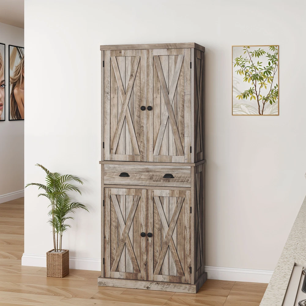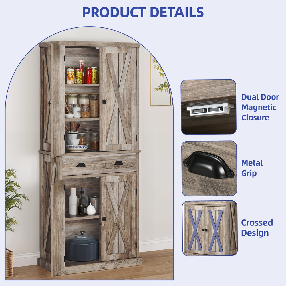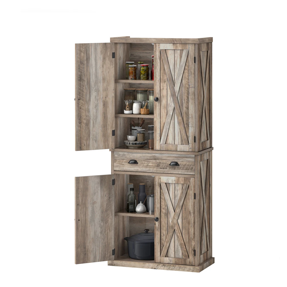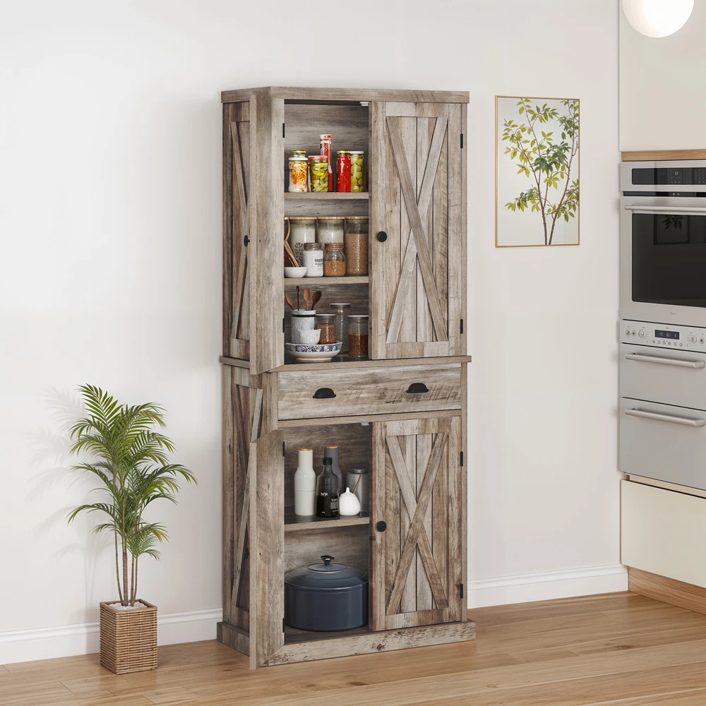 HomeFarmhouse 72-Inch Kitchen Storage Cabinet with Doors and Adjustable Shelves