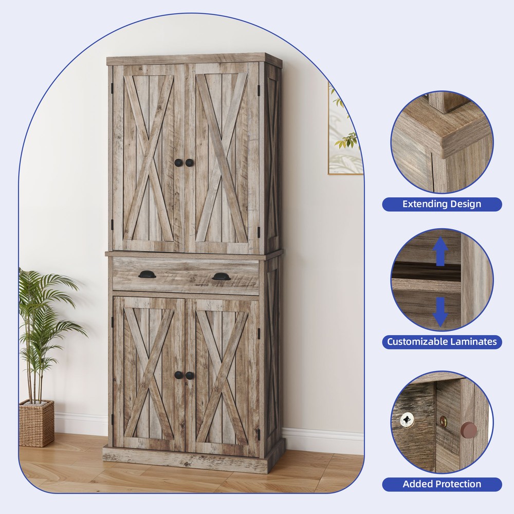 Farmhouse 72-Inch Kitchen Storage Cabinet with Doors and Adjustable Shelves