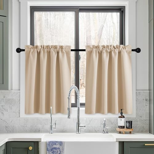 Sheer Beige Tier Kitchen Curtains 36 Inch Bathroom Short Window Panel