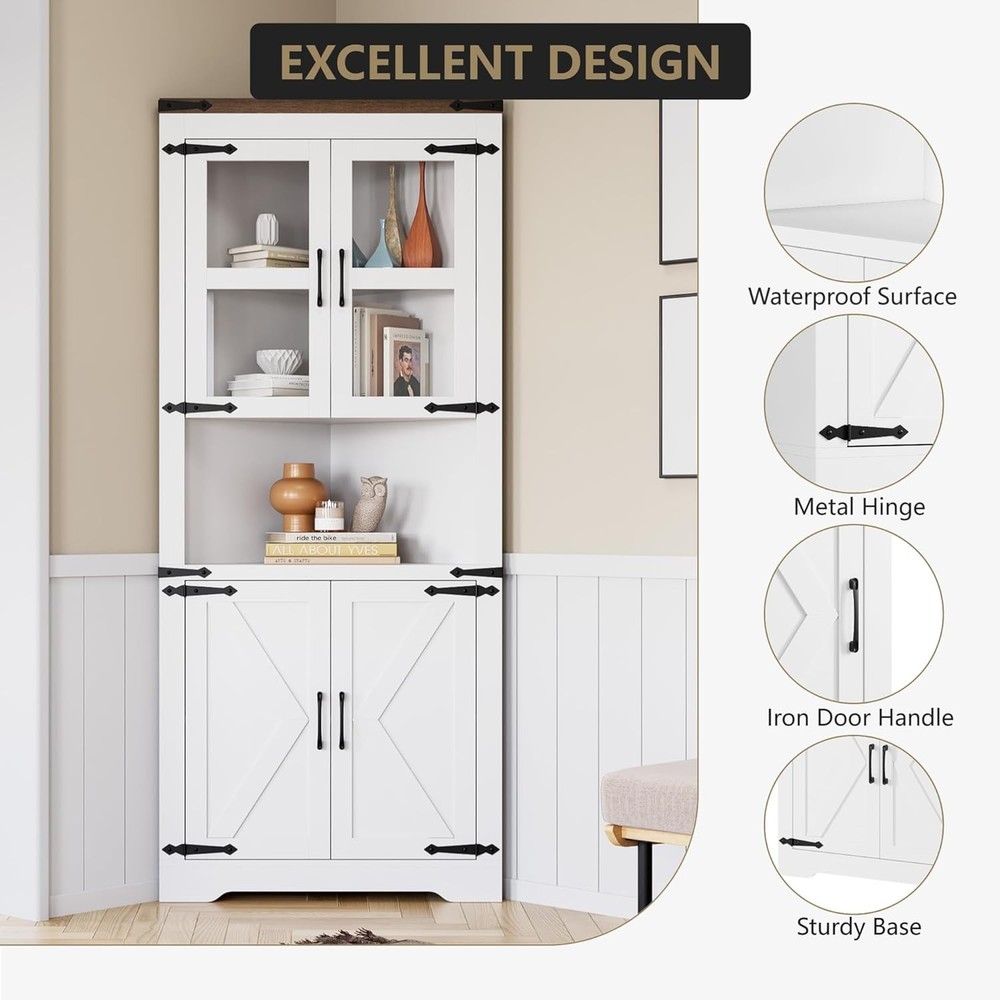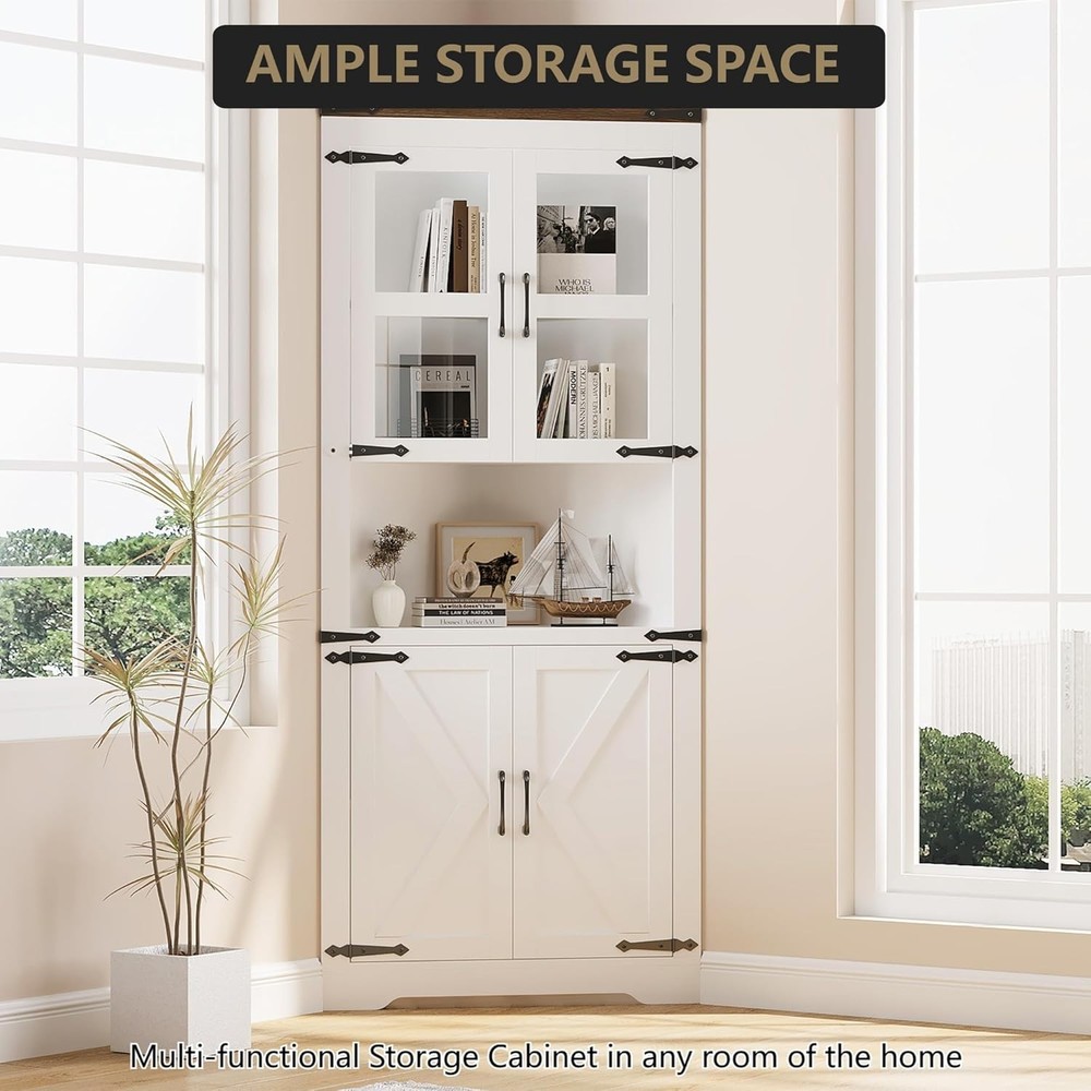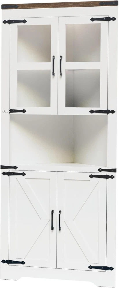 Farmhouse Corner Cabinet,Tall Storage Cabinet with 4 Door and Adjustable Shelves