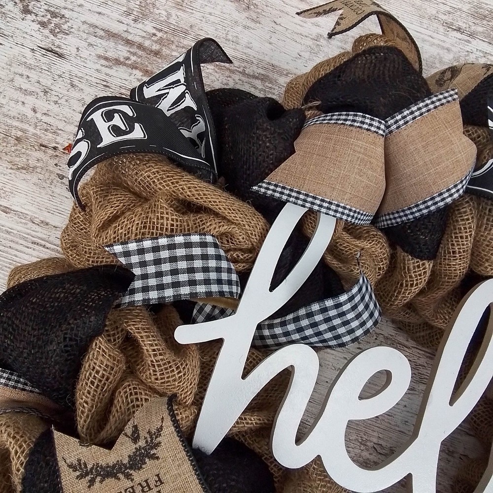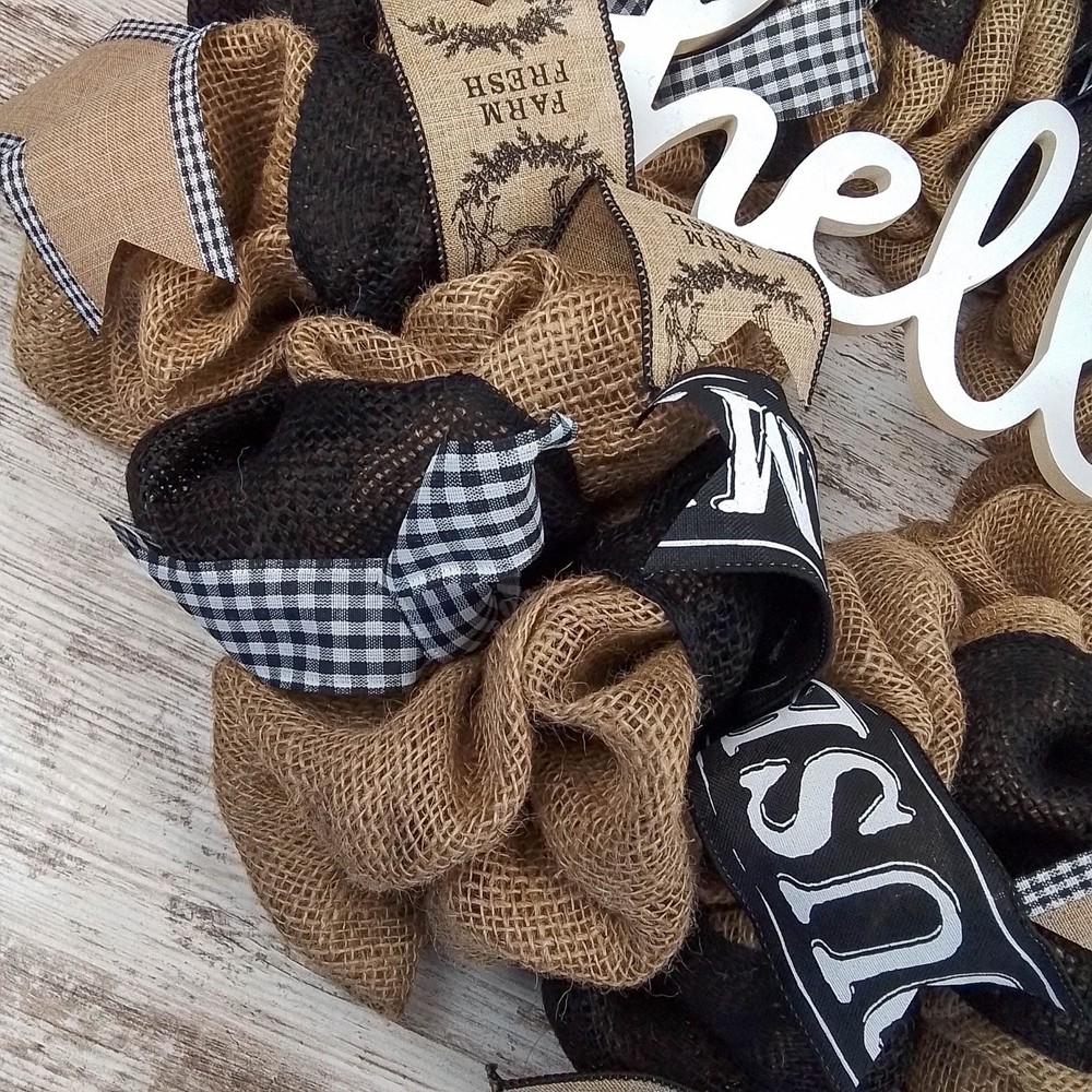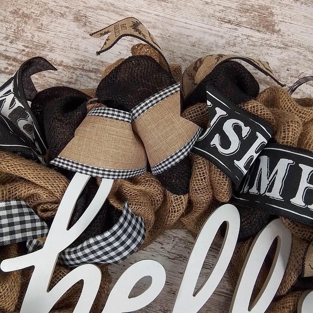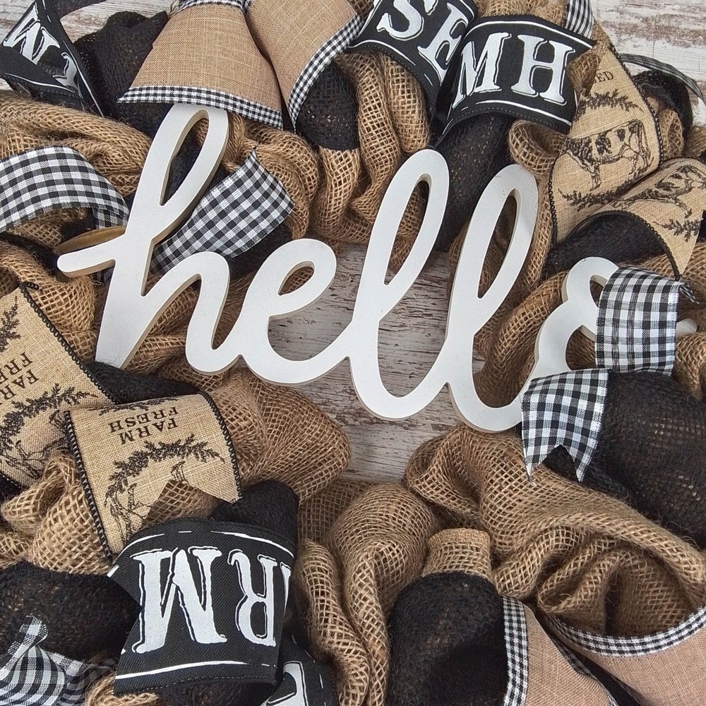 Farmhouse Hello Burlap Mesh Door Wreath for Front Door Decor