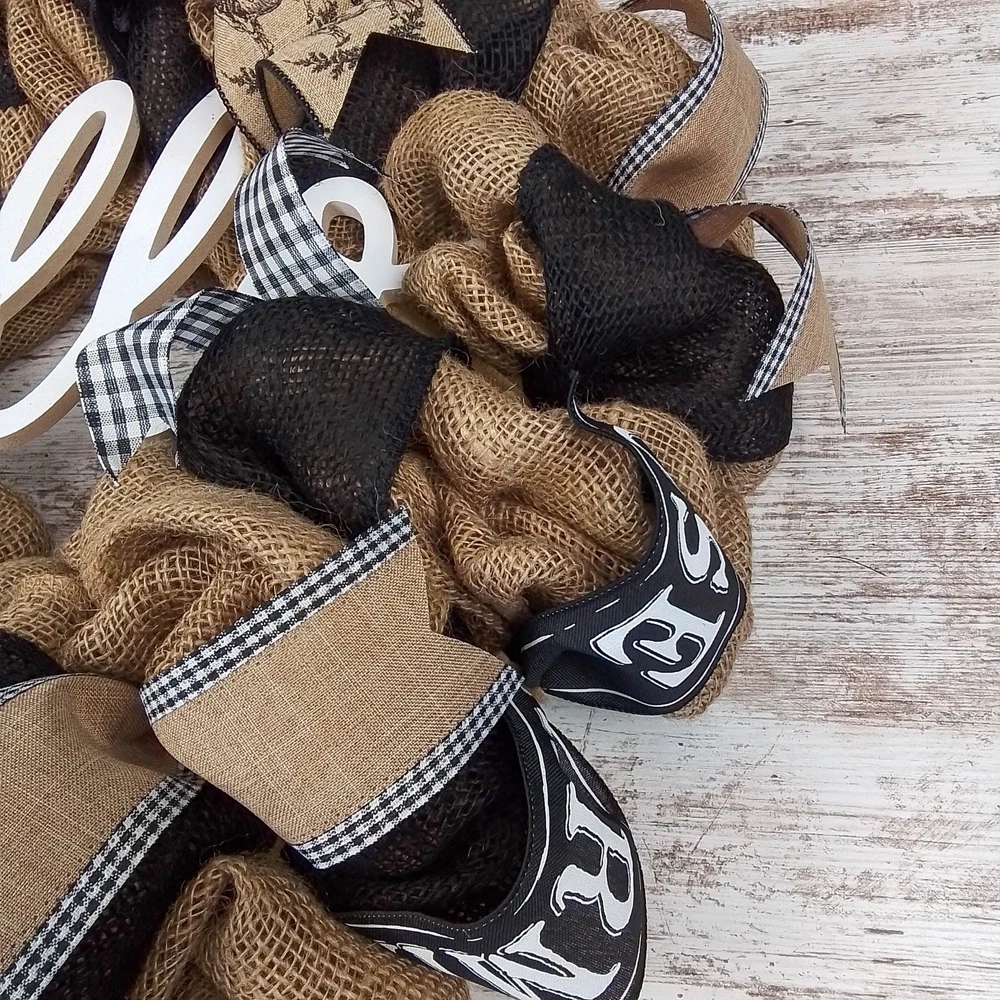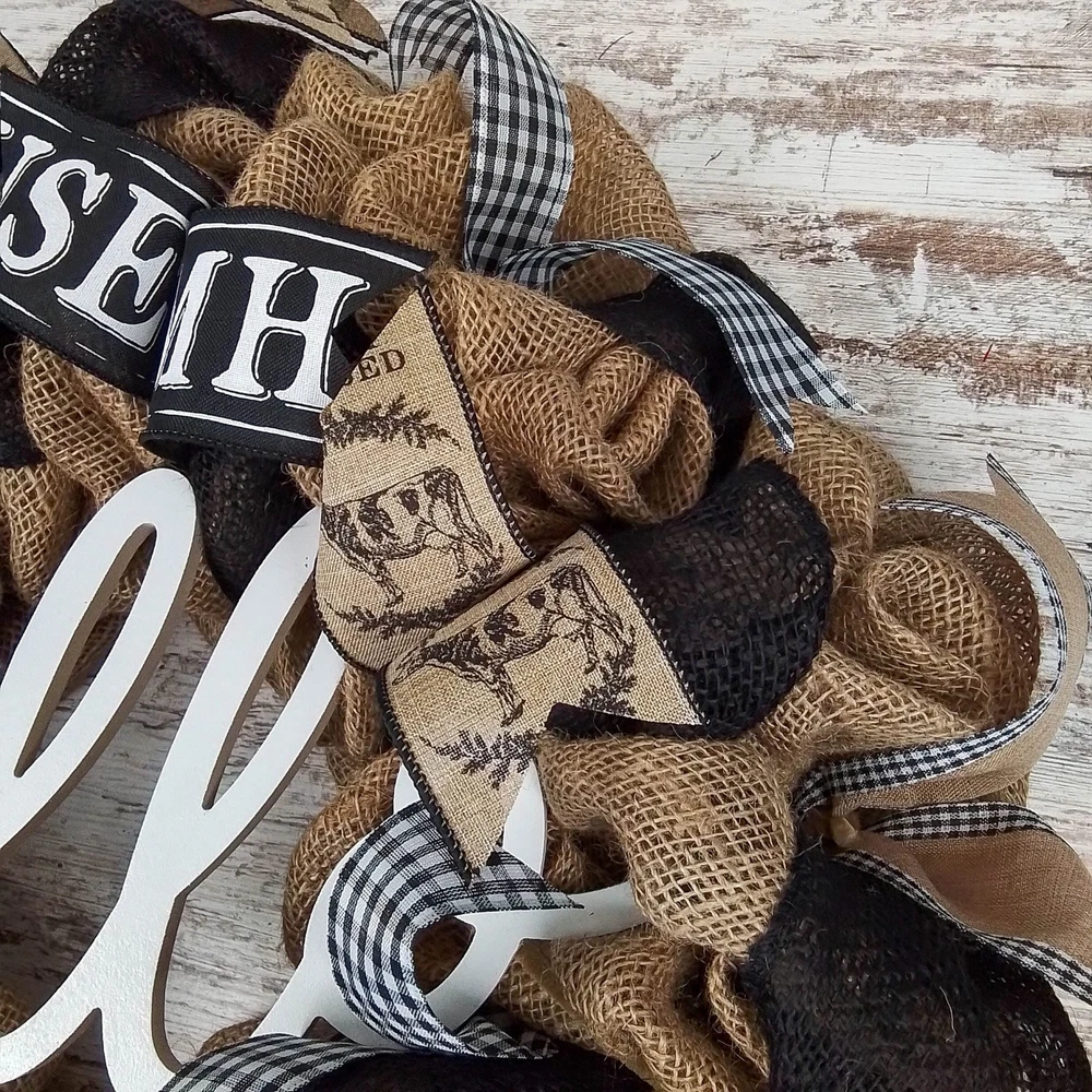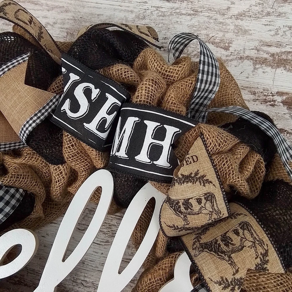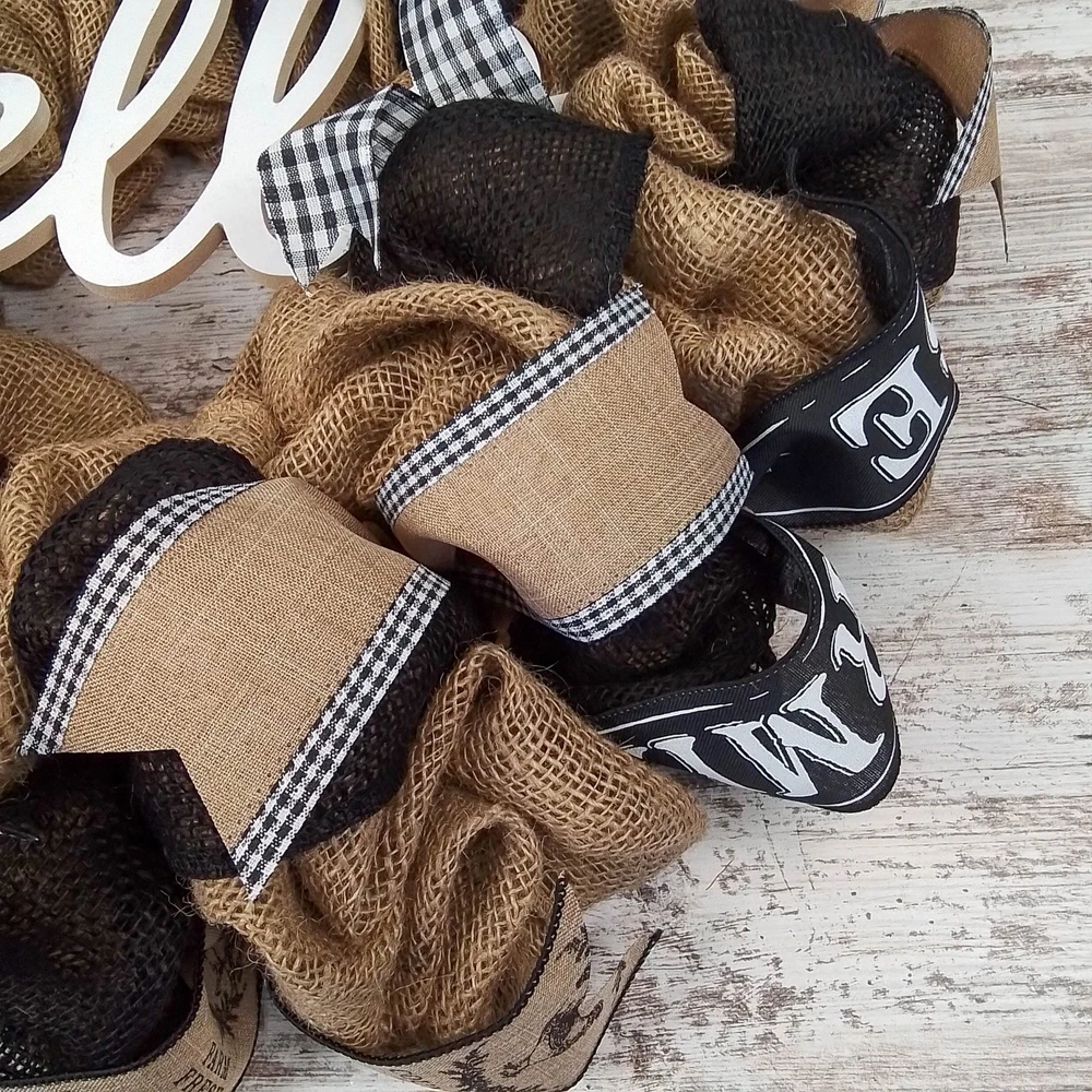 Farmhouse Hello Burlap Mesh Door Wreath for Front Door Decor