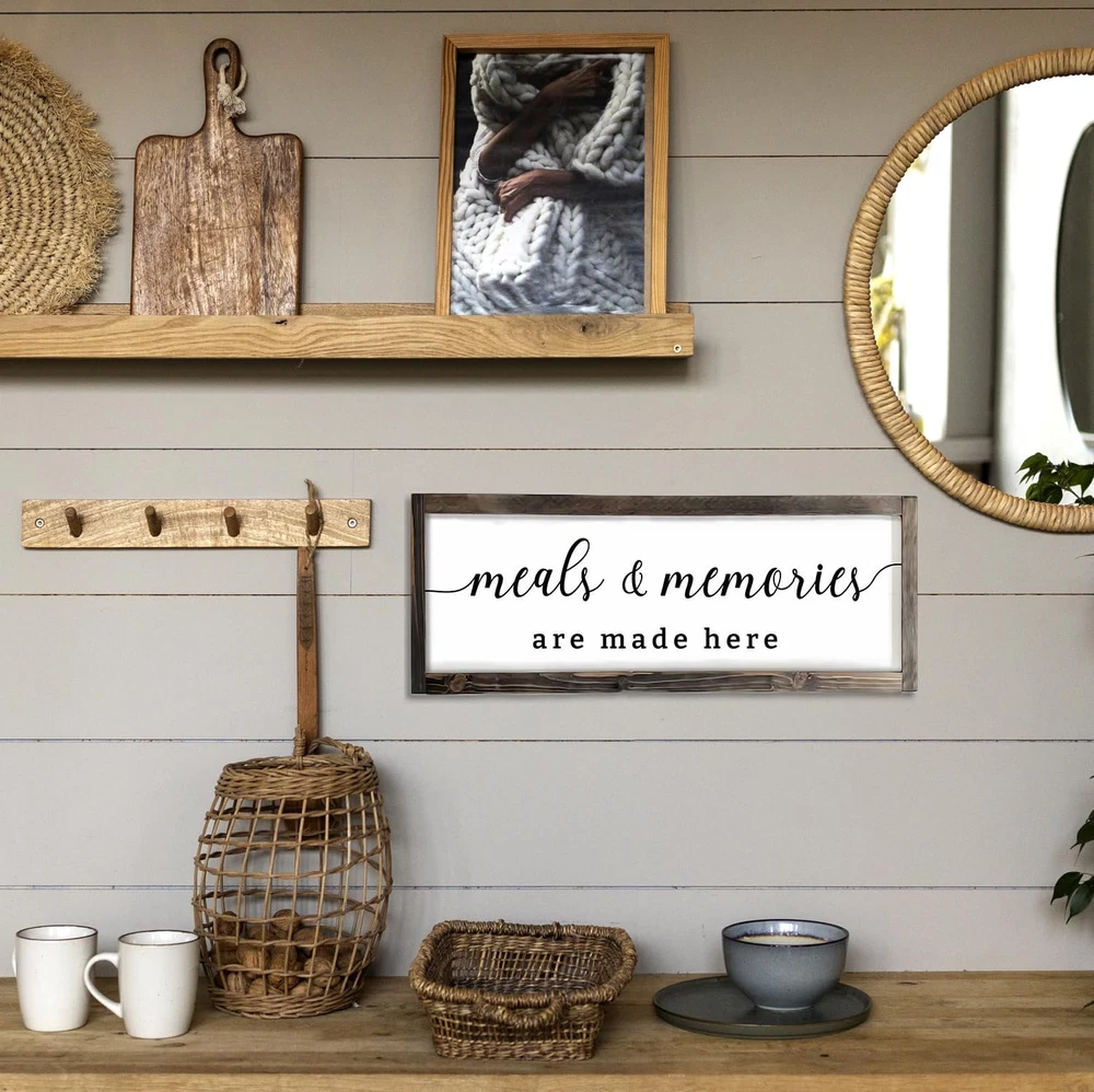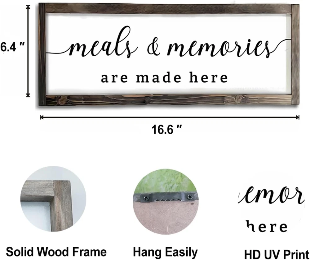 Store New Arrivals Add to Favorite View Feedback Contact Farmhouse Kitchen Wall Decor,Meals and Memories Are Made Here Sign, Rustic Wood Kitchen Signs Dinning Room Wall Decor (Meal) Description Item Thickness 0.8 Inches Style Modern Orientation forward Mounting Type Wall Mount Color Gray Product Dimensions 16.6"L x 6.4"W Material Wood Country of Origin China Shape Rectangular Item Weight 10.5 ounces Theme Religious Pattern Name Meal Pre-printed Meals and Memories Are Made Here Recommended Uses For Product Kitchen and dining room decor, housewarming, thanksgiving or mother's day gift Farmhouse Sign : Rustic Wood signs with inspirational quotes "Meals and Memories Are Made Here " - wooden texture, farmhouse frame, and easy wall hanging plaque. Kitchen Wall Decor Size : The farmhouse sign measures approx. 6.4 x 16.6 inches. Real Frames thickness it's around 0.8 Inches. Real Wood Frame Material : This farmhouse style home decor sign is very strong/sturdy . the frame is made of real solid wood and the letter board is made of MDF, the letter is printed on the sign, so it will not fade. Easy To Install: No assembly required and easy hanging ,as the solid saw tooth hangers already on the back . Kitchen Sign : perfect idea for home interior walls decor such as Kitchen or Dinner Room. A blessed gift to the person you cherish for housewarming, thanksgiving or mother's day gifts. Product Description ABOUT US We offer the best prices around on high quality products. Our E-store includes media such as books, movies, music and games while offering electronics, toys, sporting apparel, clothing, tools, general home, garden items and more. SHIPPING We are always working hard to ensure your package arrives as soon as possible. Please understand that some factors like weather, high postal traffic, and the performance of shipping companies are outside of our control. We offer free shipping to the lower 48 states and ship within 2 business days of payment, usually sooner. We do not accept P.O. Boxes. Please provide a physical address. RETURNS We offer a 30-Day Return Policy on items which you are not completely satisfied with. You have the option for a full-refund or an exchange of the item. No returns are available on items shipped outside of the USA. PAYMENT We accept PayPal. CONTACT US This page content is yet to come Please ad us to your favorite seller and visit again later Thank You CUSTOMER SATISFACTION We try our very best to make sure every customer is completely satisfied. If there's a problem, message us! We're happy to help.