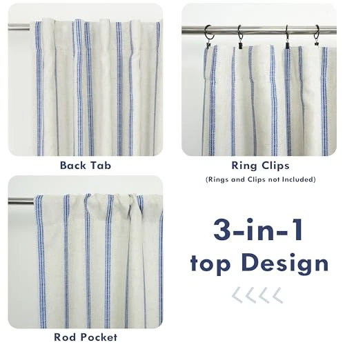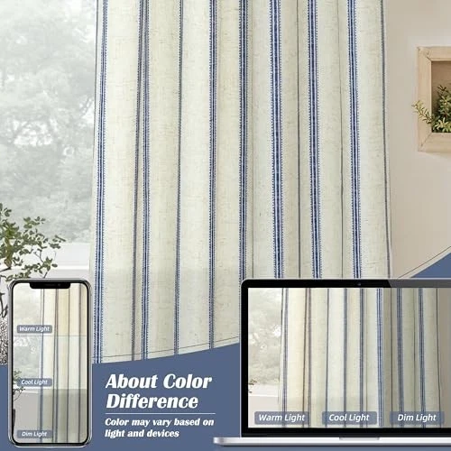 Return Policy Fast Delivery Trusted seller Farmhouse Vertical Striped Linen Blend Textured Light Filtering Semi Sheer Curtains for Living Room Bedroom 102 Inches Long Drapes 2 Panels Linen Navy Product Description Package Includes: 2 blackout linen panels per package. 3 in 1 hanging options to choose: back tab, rod pocket, with clips (Clips are not included). Rod pocket top (easily slides through a 2 inch diameter rod) allows for a classic touch. Hanging with back tabs or clips could add an elegant look to your room. DESIGN & STYLE: The vertical striped pattern window panels have a classic and elegant design, match both room color and your customized home styles, fit well for modern / antique / contemporary / trendy home decor. The linen blended fabric and simple patterns will give your window a graceful vintage look, enhance the taste of your house. Airy & Privacy: The line weave makes curtains more draped and aesthetic. Linen textured curtain creates lightweight, airy, and peaceful look, adds texture, flair and ambiance to any style of your home by allowing soft sunlight to flow through while also providing basic privacy protection. Keep your spaces bright and cheerful without worrying about visibility from outside. Versatile Placement: These aesthetic farmhouse boho country light filtering curtains could bring bright cheeriness in a variety of spaces, such as living room, bedroom, dining room, kitchen, nursery room, sun room, office, basements and more. CARE INSTRUCTIONS: Machine wash cold on a gentle cycle, using only non-chlorine bleach when necessary. Tumble dry on low heat and iron cool if needed. Please note that during the production process, slight variations in color and intensity may occur due to different hues and light intensities. Additionally, color discrepancies may be observed when viewed from various angles or on different screens. Shipping Returns Payment Shipping Shipping is FREE to all addresses other than APO/PO boxes in the lower 48 states. All our stock ships from US-based warehouses. Shipped via USPS or UPS (depending on location and package weight) Unless stated otherwise, all orders will ship within 24-72 hours of your payment being processed. Check our feedback to see the great reviews of FAST shipping we offer. Returns Seller does not accept returns Payment We currently accept payment via eBay managed payments only. Once payment is cleared, we will dispatch your shipment within 1-3 business days. Please refer to the "Shipping" tab for more information regarding shipping speed to your destination.