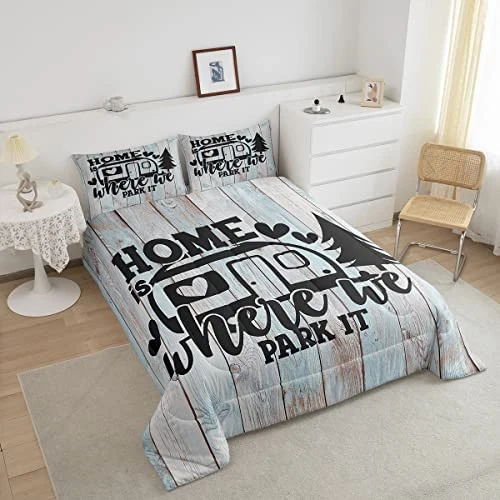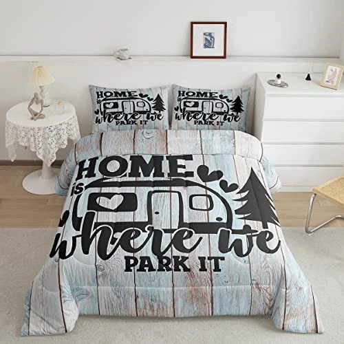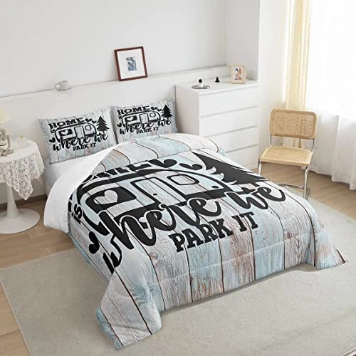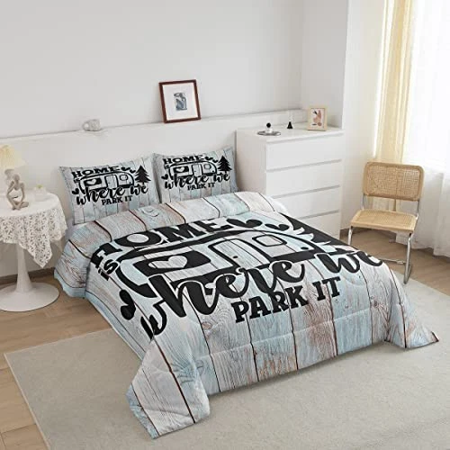 Return Policy Fast Delivery Trusted seller Farmhouse Rustic Camping Comforter Sets Full Size,Funny Home Where We Park It Bedding Comforters for Girls Teens,Explore Camper Gifts RV Life Down Alternative with 2 Pillowcases, Ultra Soft Product Description What You Can Get: 1 x Full Down Comforter 79"x 90", 2 x Pillow Cases 30"x 20". Special Stitching Technique: U shaped convoluted sewing technology,the quilt is sewn more tightly,and the inner fibers are more evenly stretched prevents fill from clumping or shifting. Unique Design: Our bedding print collections used by latest popular 3d digital printing patterns satisfy all kinds of home decoration styles including antique, vintage, modern, western, Gothic or fashion style, etc. Easy Care: Machine washed in cold water. Do not bleach, Tumble dry low. Not fading and pilling. Soft breathable and lightweight. The comforter is vacuum packed, it may be some wrinkles when come out of the bag. Put it in the sun and tap gently for a few times for fluffy. Multipurpose: The comforter is not very heavy, but still provides enough warmth. Perfect quilted duvet for spring, summer, autumn, winter. Order 1 set and use all season. Use as quilt, bedspread, blanket, bed cover. And we have many styles of patterns to choose from, suitable for all boys, girls, men and women. Shipping Returns Payment Shipping Shipping is FREE to all addresses other than APO/PO boxes in the lower 48 states. All our stock ships from US-based warehouses. Shipped via USPS or UPS (depending on location and package weight) Unless stated otherwise, all orders will ship within 24-72 hours of your payment being processed. Check our feedback to see the great reviews of FAST shipping we offer. Returns Seller does not accept returns Payment We currently accept payment via eBay managed payments only. Once payment is cleared, we will dispatch your shipment within 1-3 business days. Please refer to the "Shipping" tab for more information regarding shipping speed to your destination.