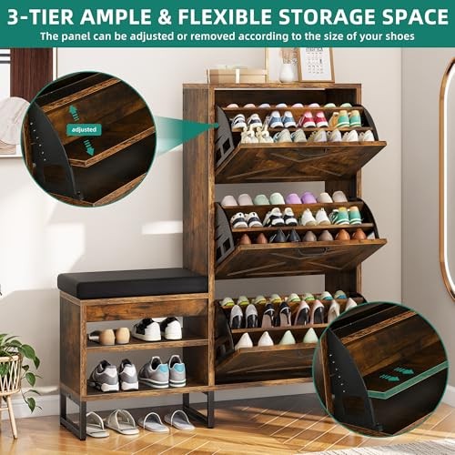 Return Policy Fast Delivery Trusted seller Farmhouse Shoe Cabinet with 3 Flip Drawers for Entryway, Shoe Storage Cabinet with Shoe Bench, Narrow Slim Shoe Rack Organizer for Entrance, Living Room, Hallway, Rustic Brown Product Description Engineered Wood Tidy Up Your Entryway: Step into a tidy space every time you come home. Our shoe cabinet blends a comfortable bench with smart storage, letting you sit on the plush cushion, kick off your shoes, and slide into relaxation as you organize your footwear Ample Hidden Storage: Keep your growing shoe collection neatly organized in 3 flip drawers with hidden compartments. Adjustable shelves inside let you customize the space, ensuring everything from sneakers to boots has their spot Adaptable Style: This entryway shoe cabinet was designed in warm white, rustic brown, and vintage coffee, this shoe cabinet complements any decor. Whether your style is modern, farmhouse, or vintage, it seamlessly fits into your home's aesthetic Sturdy & Safe Construction: Crafted from sturdy engineered wood with square steel legs, our shoe organizer offers stability wver it stands. The included non-tipping kit ensures extra security, giving you peace of mind Effortless Assembly: Assembling this hidden shoe cabinet a breeze with clear instructions and labeled parts. Plus, with a dedicated team ready to assist with any questions, you’re sure to enjoy a smooth shopping experience from start to finish Shipping Returns Payment Shipping Shipping is FREE to all addresses other than APO/PO boxes in the lower 48 states. All our stock ships from US-based warehouses. Shipped via USPS or UPS (depending on location and package weight) Unless stated otherwise, all orders will ship within 24-72 hours of your payment being processed. Check our feedback to see the great reviews of FAST shipping we offer. Returns Seller does not accept returns Payment We currently accept payment via eBay managed payments only. Once payment is cleared, we will dispatch your shipment within 1-3 business days. Please refer to the "Shipping" tab for more information regarding shipping speed to your destination.