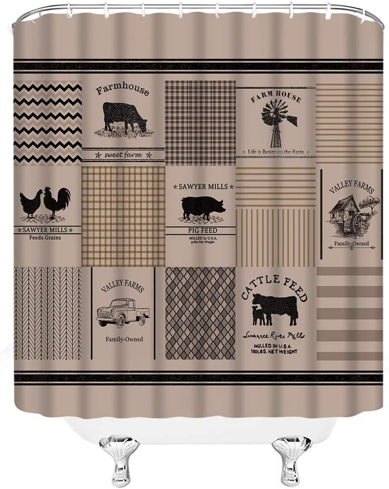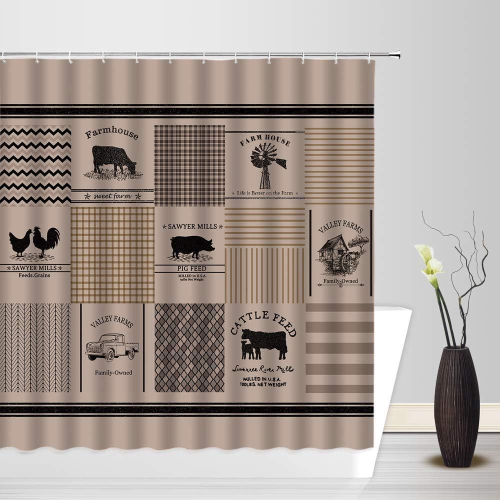 Farmhouse Shower Curtain Rustic Sawyer Mill Farm Animal Truck Windmill Plaid Ret