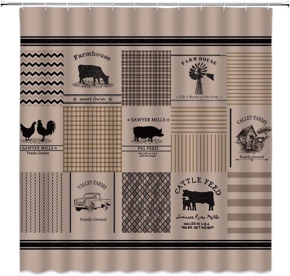Item Weight: 13.1 ounces Seasons: All Season Fabric Type: Polyester Material: Does not apply Style: Farmhouse Lining Description: Unlined Hanging Method: Rod Pocket Brand: Does not apply Weave Type: Machine made Special Feature: Waterproof Model Name: 1 Pattern: Animal,Plaid Product Dimensions: 70"L x 70"W Included Components: Hook Indoor/Outdoor Usage: Indoor Type: Does not apply Number of Items: 1 UPC: 744759851123 Top Style: Rod Pocket gtin13: 744759851123 Recommended Uses For Product: Indoor Curtain pleat: Tailored Age Range (Description): Adult Package Weight: 0.37 Kilograms Color: Does not apply Opacity: Semi-sheer Unit Count: 1.0 Count Specific Uses For Product: Shower Batteries required: No Theme: Farmhouse,Plaid,Retro,Rustic Curtain Form: Shower Curtain Room Type: Bathroom Size: 70"W x 70"L (Pack of 1) Product Care Instructions: Machine Wash