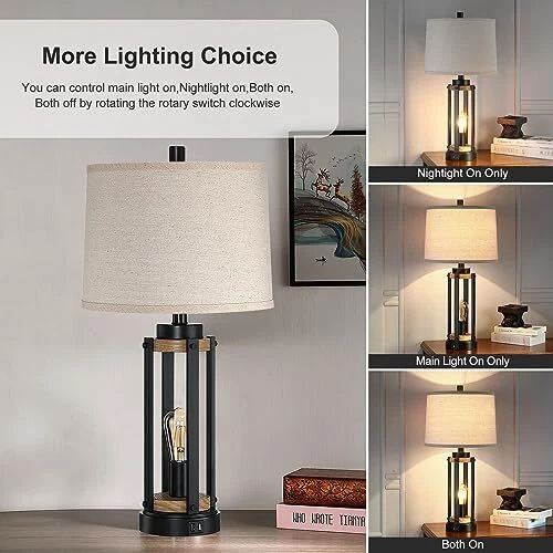 Menu 1. We require immediate payment. 2. We currently accept payment via eBay managed payments only. 3. Once payment is cleared, we will dispatch your shipment within 1-3 business days. Please refer to the "Shipping" tab for more information regarding shipping speed to your destination. Farmhouse Table Lamps for Living Room Set of 2, 26” Rustic Beside Lamps with USB Charging Ports and Night Light, Bedroom Nightstand Lamp Vintage Reading Lamps for End Table,Bulbs Included Product description Large Table Lamp with Rotary Switch:Our tall table lamp height is up to 26 inch which will fit your grand house well. large-diameter lampshades make the glow soft so it can protect our eyes. You will get two regular table lamps and two night lights which are controlled by a convenient 4-way rotary switch, you can easily switch between top light on, night light on, both lights on, or both off. Edison nightlight bulbs combine industrial and rustic styles, adding charm to your home. Nightstand Lamps with Dual USB Charging Ports: These bedside lamps offer not just light but also convenience. Each desk lamp base features two built-in USB fast charging ports, allowing you to charge phones and electronic devices hassle-free. Even when the tall table lamp is off, the charging ports continue to work, ensuring your devices stay powered up. Ideal for beside a sofa for cozy reading time or as a bedside lamp, eliminating the need for wall chargers and reducing clutter. Premium Material & Eye Protection,:The rustic table lamps feature a sturdy metal base with a polished finish for easy cleaning and durability. The natural linen lampshade softens glare, protecting your eyes from fatigue, while creating a comfortable and relaxing ambiance. The upper and below lighting design illuminates your space more extensively, delivering a delightful lighting experience. Farmhouse Table Lamps Set of 2: This pair of decorative table lamps feature distinctive profiles that elevate the look of your living space while casting ambient light. This versatile industrial table lamp with its matte black and elegant frame suits any space, whether it's a bedroom, office, foyer, or living room. Perfect for reading, working on your laptop, or looking at your phone's screen, this lamp complements your farmhouse decor while offering a gentle and inviting illumination. Free LED Bulbs with Table Lamp Set:This vintage nightlight lamp comes with 2pcs A19 bulbs and 2pcs ST58 bulbs,offering energy-saving convenience with a lifespan of 25000 hours.saving you the hassle of purchg additional compatible bulbs.If you wanna change bulbs for different styles,It supports 60W MAX E26 socket light bulbs (120V, 60Hz),compatible with LED, CFL, incandescent,and halogen bulbs.We suggest LED bulbs for low energy consumption and long-lifespan. PLEASE MESSAGE US IF YOU HAVE ANY OTHER QUESTIONS, AND MANY THANKS FOR READING ALL OF THIS. Copyright ©#. All Rights Reserved.