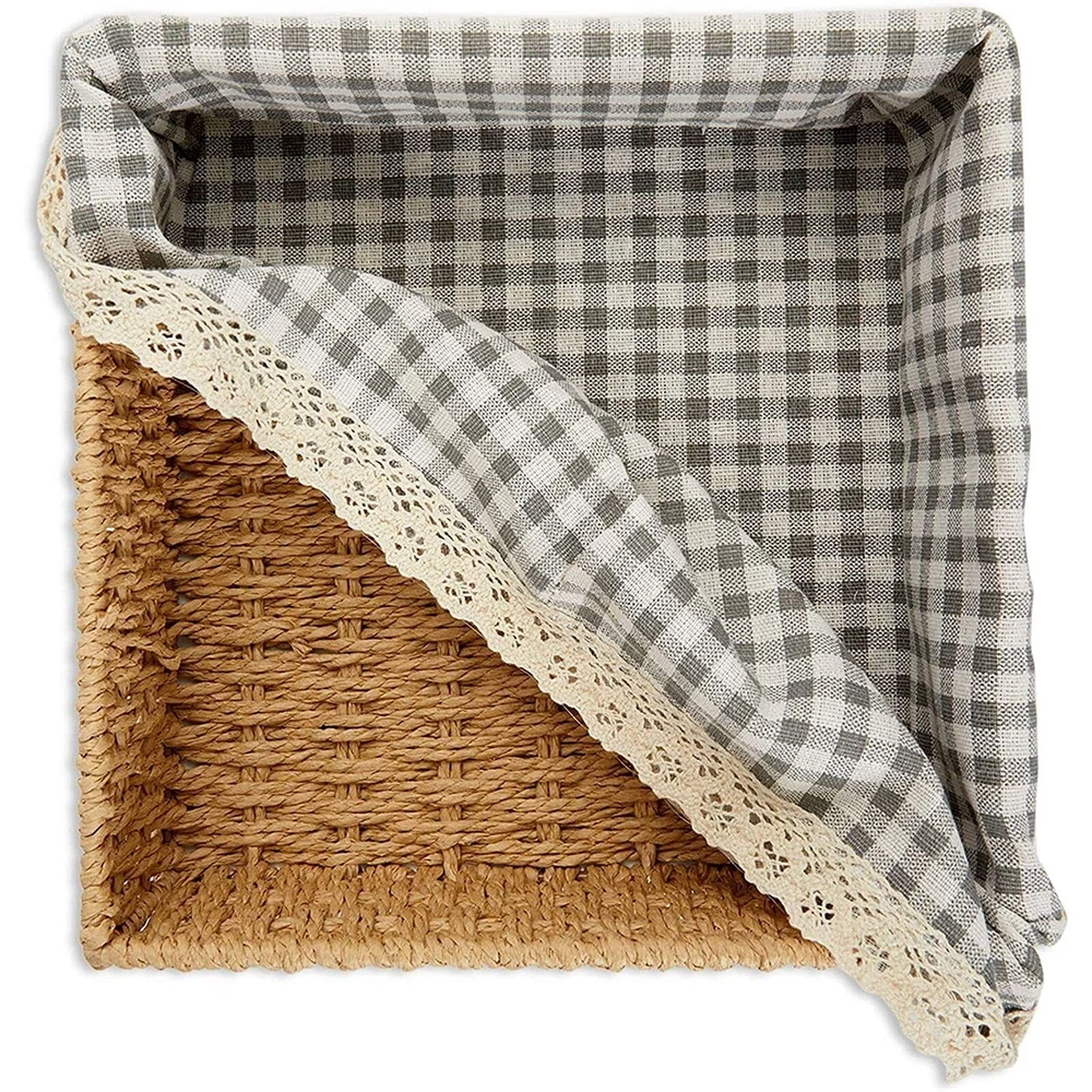 Our 3 baskets for organizing are perfect for those who want functionality and style in their home storage solutions. Each basket has a removable liner, providing versatile storage for various household items, from towels and clothing to beauty products and spices. These assorted baskets for organizing can be used across multiple house rooms, including the bathroom, laundry room, kitchen, living room, and bedroom, for decorative and practical purposes. Our wicker baskets with lining are made of high-quality woven paper material, ensuring they are durable and stylish. The neutral color of the baskets makes them versatile enough to match any rustic-style or modern home decorations. They are also easy to clean and maintain, allowing you to use them for years. These baskets make great gifts for Christmas, birthdays, or housewarming parties. With 3 different sizes, you can use them separately or stack them for even more storage space. They are perfect for those who want to declutter their home while adding a touch of elegance to their decor. Basket with Liner for Organizing: Use this set of rustic-style woven wicker storage baskets for organizing home essentials like magazines, clothes, toys, craft and school supplies, and hand towels Nesting: These lined baskets stack inside of each other for convenient storage when not in use; ideal for your drawer, shelf, desk, laundry room, bathroom, nursery, or kitchen Strong and Lightweight: This set of woven wicker storage baskets for shelves is made of woven paper material, has a sturdy iron wire frame, and a removable cotton lining that is easy to clean Assorted Sizes: The wicker baskets for organizing come in 3 sizes: the large basket measures 10x3 inches, the medium basket measures 8x3 inches, and the small basket measures 7x3 inches What You'll Get: You will receive 3 wicker organizing baskets; each banana leaf basket is an excellent gift for a friend or loved one at a housewarming party, birthday party, or baby shower