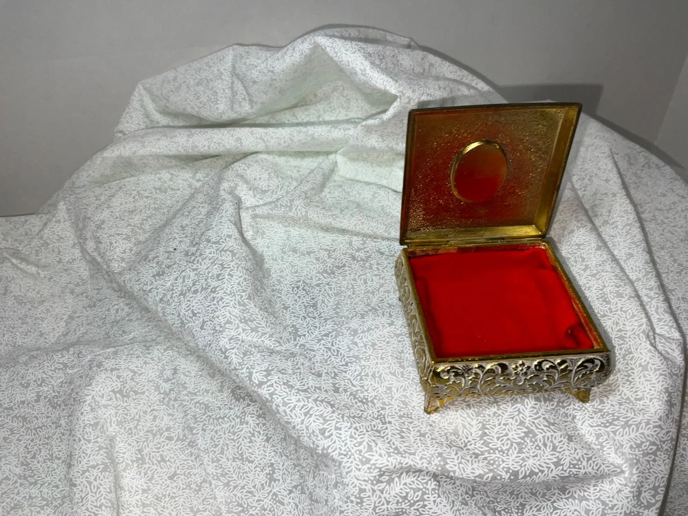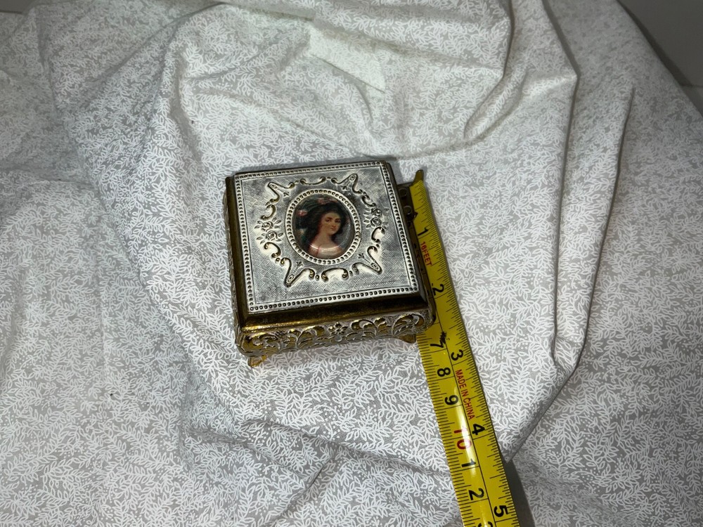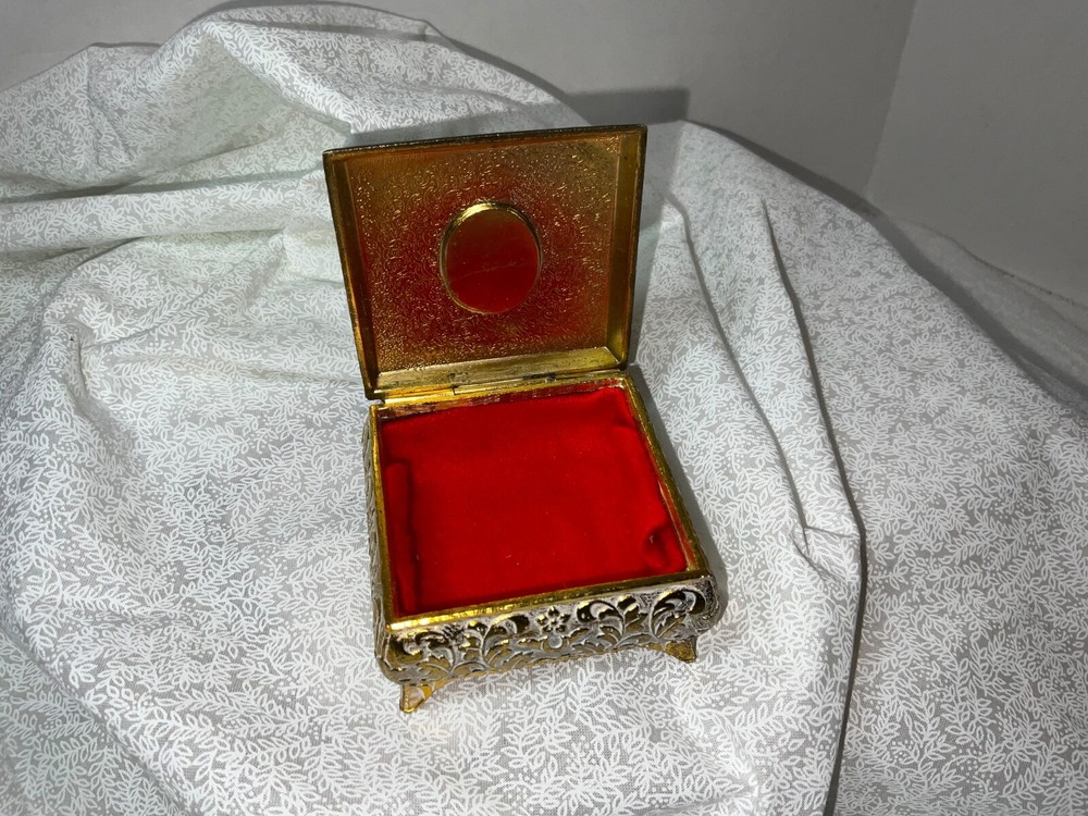 Type: Jewelry Box Item Length: 2 in Shape: Square Color: Gold Size: Small Collection: Keepsake Boxes Pattern: Roses Material: Metal Features: Boxed Care Instructions: Easy Care Packaging: Box Seller Notes: “No issues” Subject: Boxing Occasion: All Occasions Finish: Metallic