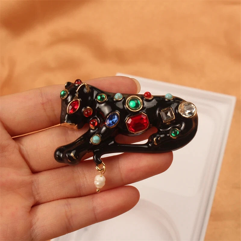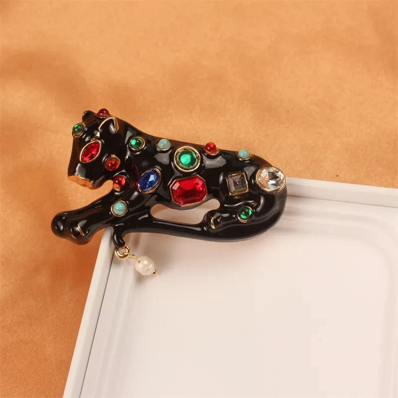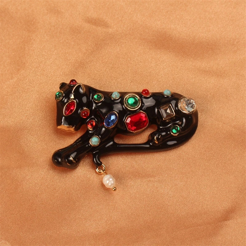 Fashion Alloy Enamel Rhinestone Leopard Brooch for Men Daily Accessories Pins