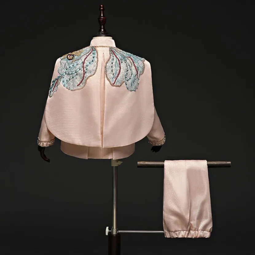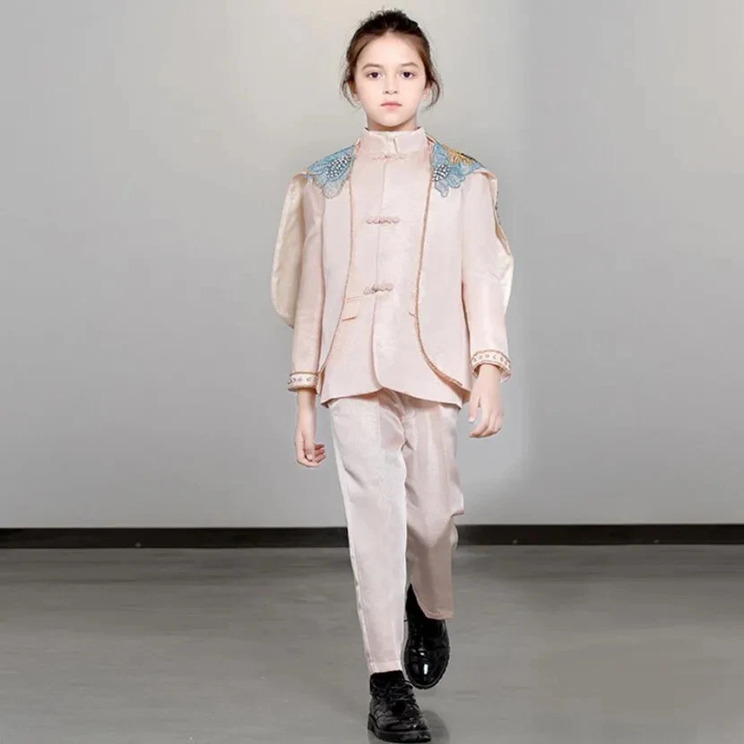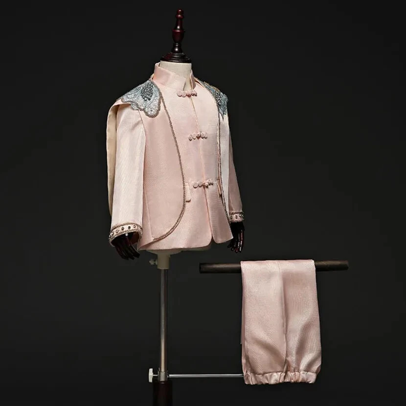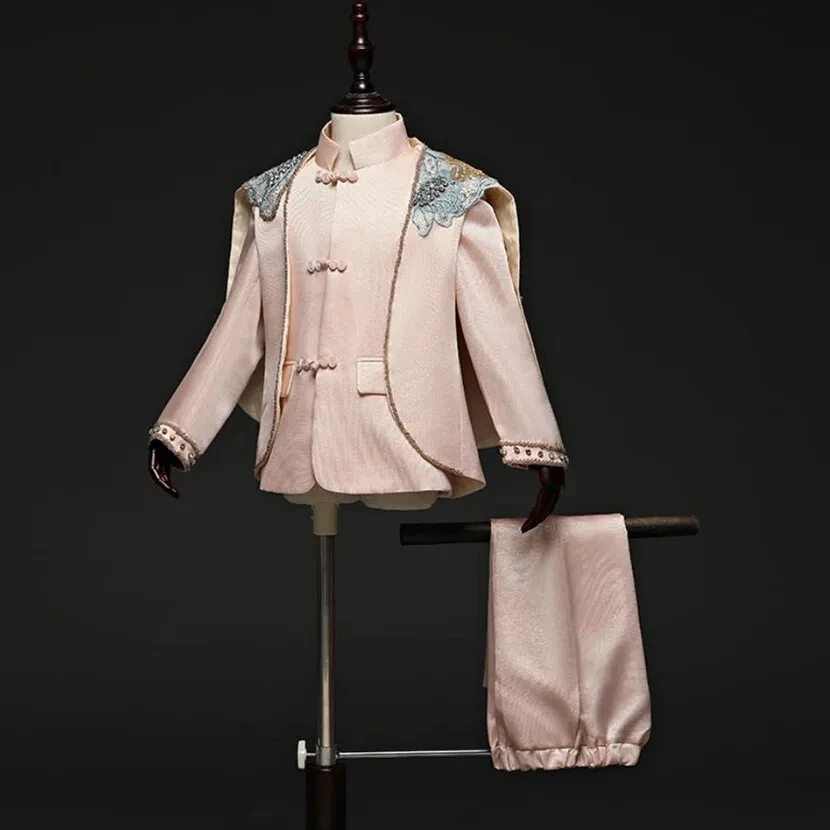 Features: shawl Gender: Boys Fabric Type: Blended Fabric Garment Care: Hand Wash Only Jacket Cut: Single-Breasted Set Includes: Jacket, Pants, shawl Handmade: Yes Occasion: Party Style: Tuxedo Size: 90-150 Model Number: A2157 Sleeve Style: regular Collar: O-Neck Sleeve Length(cm): Full Season: Fall, Spring, Summer Country/Region of Manufacture: China Department: Boys Vintage: Yes Pattern Type: Solid Lining Material: Polyester Pattern: Solid Sleeve Length: Long Sleeve Brand: Fashion Theme: Angel, Birthday, Wedding Closure Type: Single Breasted Number of Pieces: 3 Piece Type: Suit Set Jacket Front Button Style: Three-Button Material: Polyester Outerwear Type: coat Item Type: sets Jacket Lapel Style: Shawl Department Name: Children Jacket/Coat Length: Regular Fit: Regular