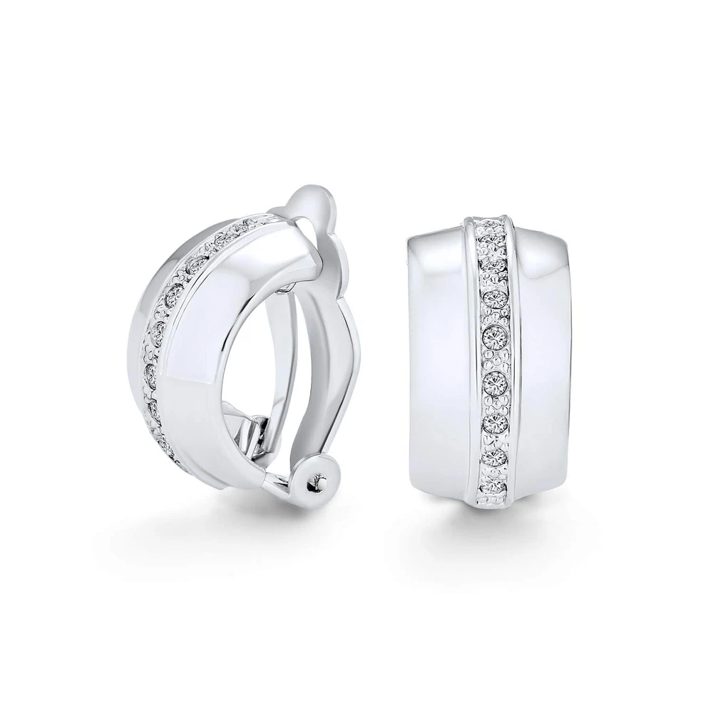 Fashion Bridal Wedding 3 Row Pave Crystal Dome Endless Hinged Huggie Hoop Clip On Earrings For Women Non Pierced Ears Yellow Gold Silver Plated Product Details Color: Clear Brand: Bling Jewelry MPN: AG-SE5735S-PAR UPC: 640626611268 EAN: 0640626611268 Is Discontinued By Manufacturer : No Product Dimensions : 0.75 x 0.4 x 0.75 inches; 2.5 ounces Item model number : AG-SE5735S-PAR Department : womens Date First Available : August 22, 2023 Manufacturer : Bling Jewelry Brand, Seller, or Collection Name: Bling Jewelry Metal stamp: Not stamped Metal: rhodium-plated-brass Material: Crystal, Metal Gem Type: No Gemstone Setting: Pave Item Length: 0.7 inches Width: 0.35 inches Length: 0.7 inches Back finding: Clip On Resizable: No Number of stones: 30 Model number: AG-SE0018SI Size per pearl: not-applicable Our huggie hoops are fun and fashionable. Clip on hoop earrings make sensational gifts for women with non pierced ears. Start shopping for a perfect Mothers Day gift for your mom, aunt or grandmother and get her our comfortable and stylish crystal earrings. They are designed in a classic huggie hoop style that will take her from day into night.