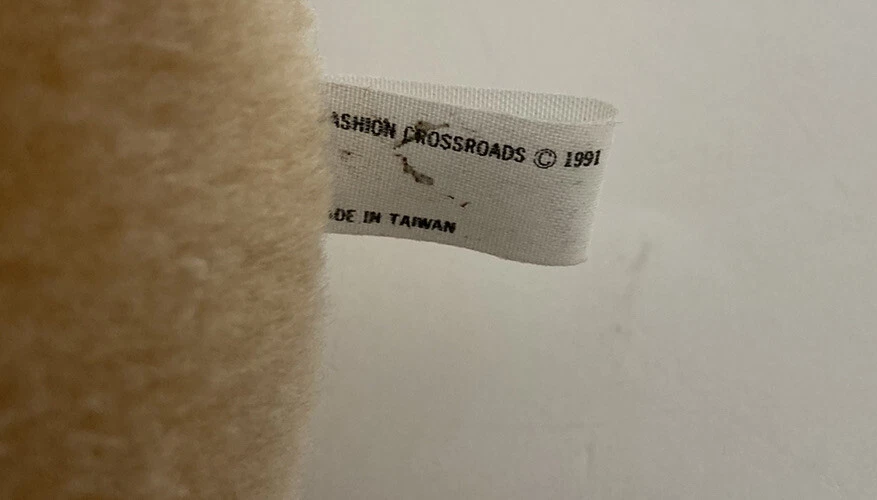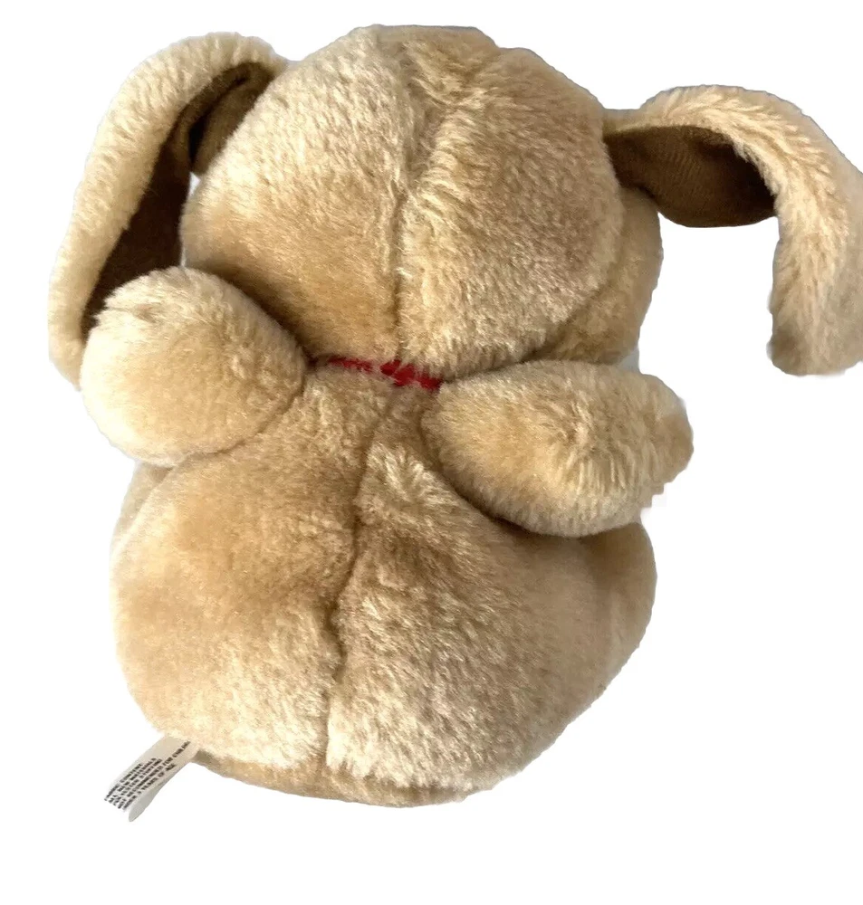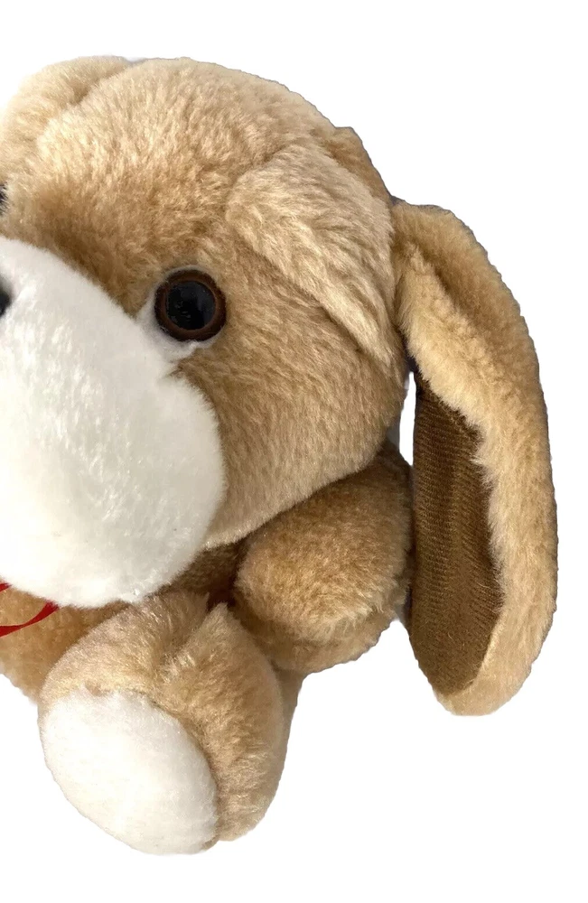 This adorable plush puppy from Fashion Crossroads is sure to become a beloved companion for anyone who loves dogs! With floppy ears, brown eyes, and a red bow, this medium-sized stuffed animal is perfect for all occasions and ages 3 and up. It has been gently used and is in great condition, ready to be loved by its new owner. This plush toy has been surface washed and comes from Taiwan. It is a great addition to any stuffed animal collection, and its timeless design makes it suitable for display or play. Don't miss the chance to bring home this charming Fashion Crossroads 1991 puppy with a red bow!
