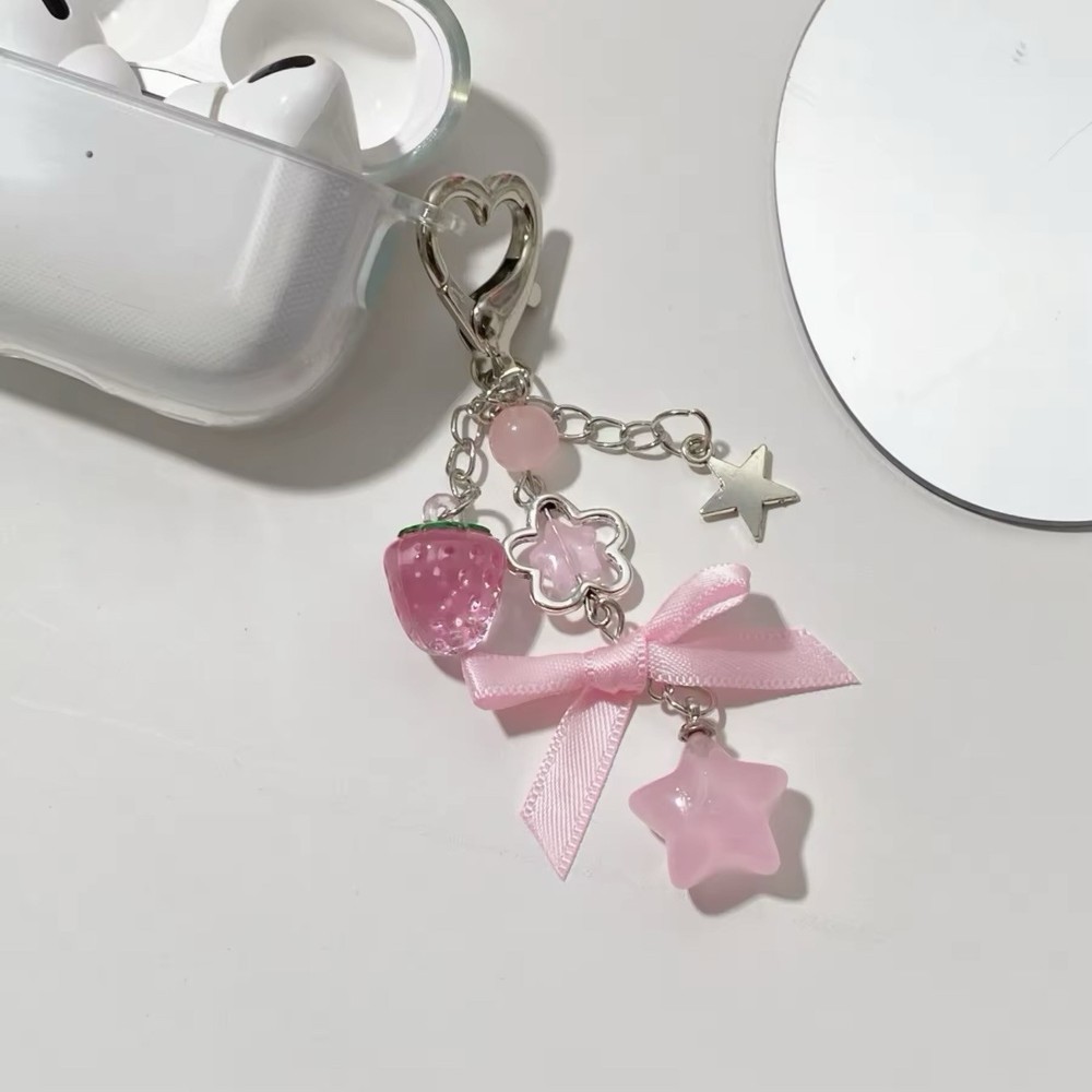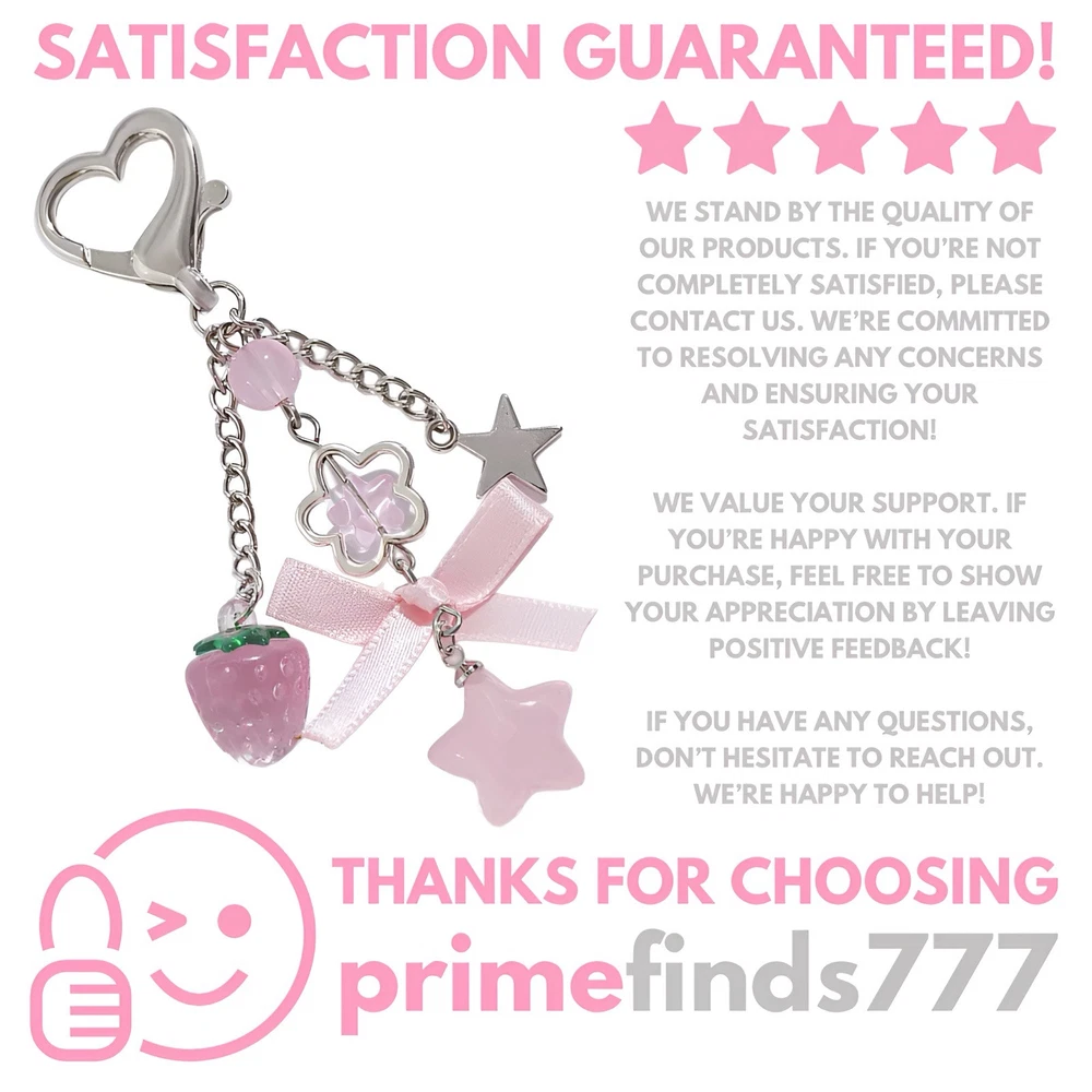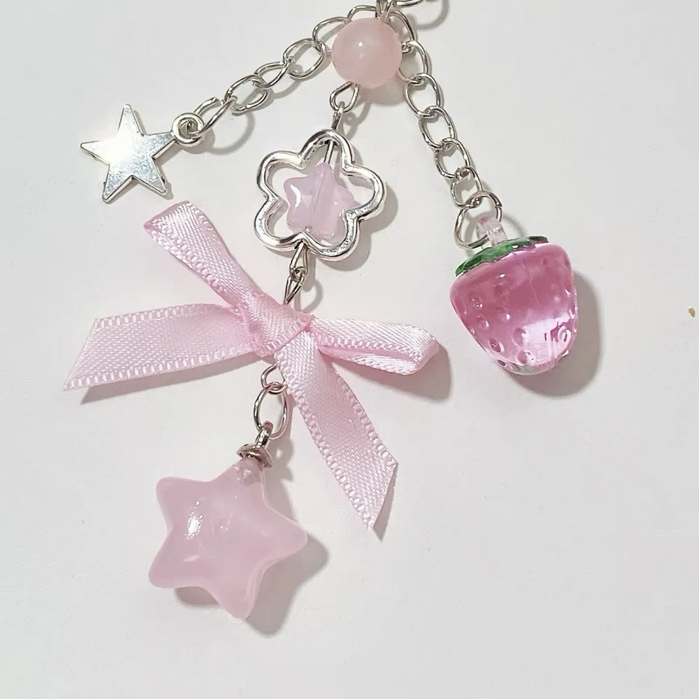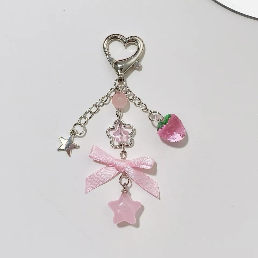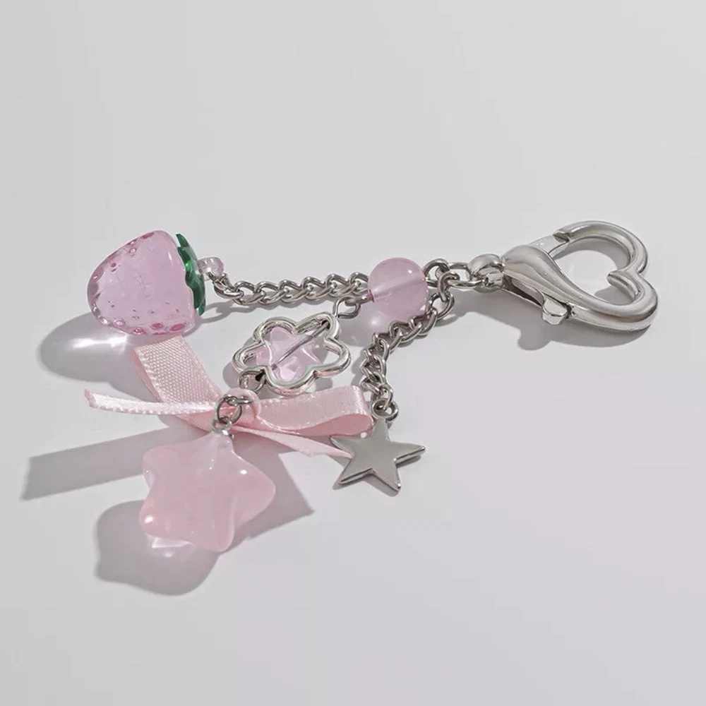 Cute Pink Strawberry Bow Keychain – Silver Heart Clasp, Jelly Charms, Star & Flower – Stylish Bag & Key Accessory Add a touch of charm to your accessories with this adorable pink strawberry bow keychain! Designed with a large silver heart-shaped clasp, this keychain features cute jelly-like translucent pink charms, including a strawberry, round bead, star, and flower, along with a silver star and a delicate pink ribbon bow. Perfect for adding a stylish and playful touch to your keys, bags, or backpacks! Features: • Charming Design: Features a mix of clear pink jelly charms, a silver star, and a pink bow for a cute and stylish look. • Durable & Lightweight: Made from resin, alloy, and acrylic with electroplated silver accents for a polished finish. • Heart-Shaped Clasp: Secure and stylish, making it easy to attach to bags, keys, or zippers. • Versatile Accessory: Ideal for decorating keys, handbags, backpacks, belts, AirPod/earbud cases, or car accessories. • Great Gift Idea: A perfect gift for women, teens, and anyone who loves cute and trendy accessories! Specifications: • Material: Resin, Alloy, Acrylic • Processing: Electroplating • Length: Approx. 4.33 inches (11 cm) • Color: Silver with Pink Accents (As Shown) Package Includes: • 1x Pink Strawberry Bow Keychain Important Notes: • Dimensions: Due to manual measurement, there may be a slight size difference. • Color Variations: Due to lighting, screen settings, and viewing conditions, colors may vary slightly from the images. • Customer Satisfaction: If you experience any issues with your order, please contact us before opening a return case or leaving feedback. We are committed to resolving any concerns and ensuring your satisfaction! Elevate your accessories with this adorable pink strawberry bow keychain – a perfect blend of elegance and cuteness! Order yours today!