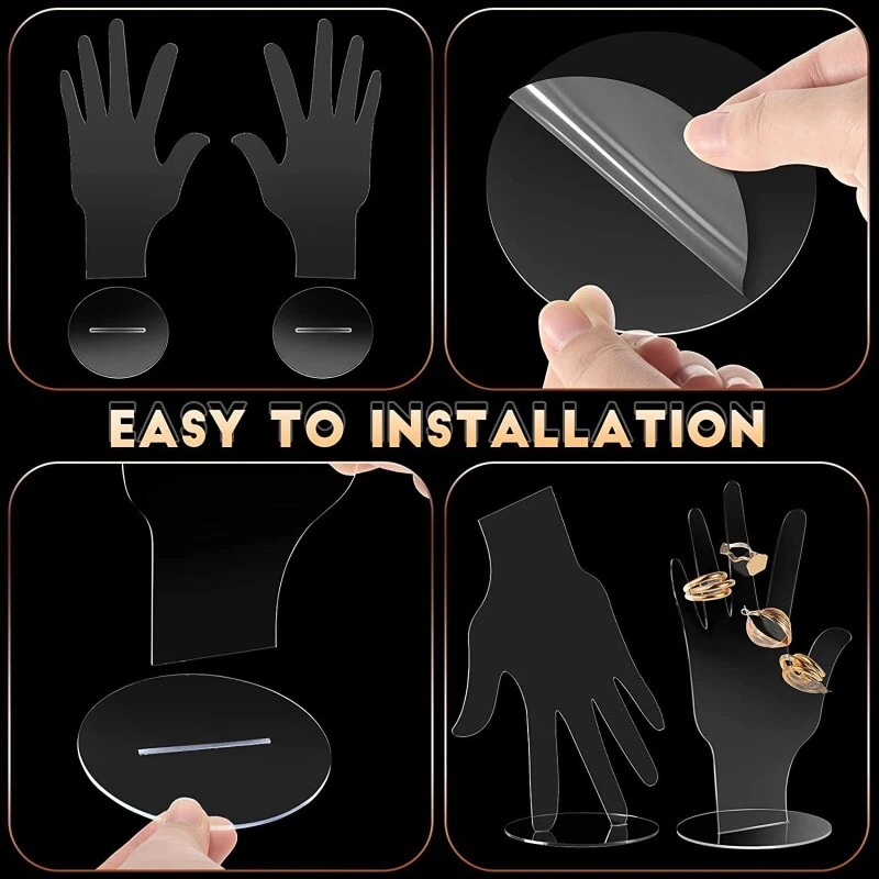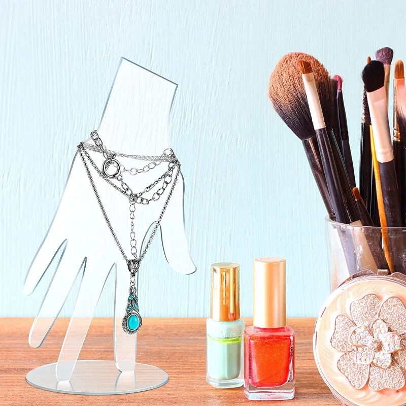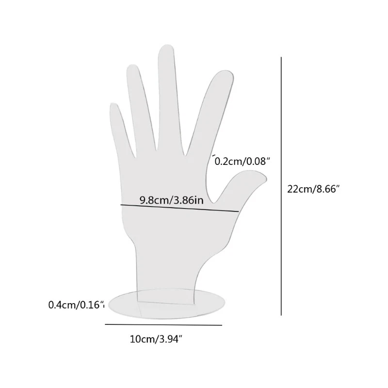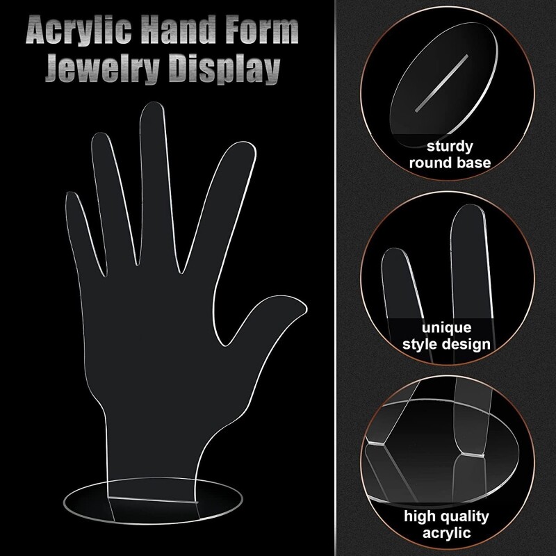 Features: Hand Jewelry Holder : Exquisite and professionally made, the display stands can definitely showcase your jewelry beautifully. Ring Display:You can stand the hand upright for holding rings and a bracelet. You may also place it upside down for holding bracelets on the wrist and rings on the base. Jewelry Organizer: Showcase your rings, bracelets or other jewelry on this unique piece for trade shows, craft fair tables or as gifts to your friends. Exquisite design: the jewelry hand display is designed with hand shape, the design of hand as a display of jewelry, this design has a different feel, elegant and exquisite. Widely applicable: these jewelry hand display holders can be applied to different occasions, such as display necklaces, bracelets, rings, watches, gloves, and so on, and you can also these hand jewelry holders with your friends or family. Specifications: Material: Acrylic Base Diameter: Approx.10x0.4cm/3.94x0.15inch Hand Stand : Approx.13x22x0.2cm/5.11x8.66x0.07inch Package Includes: 1 Set Jewelry Stand note: Please allow 1-2cm errors due to manual measurement,pls make sure that you do not mind before you order. Due to the difference between different monitors, the picture may not reflect the actual color of the item.