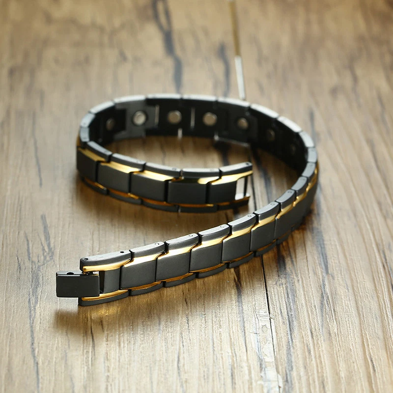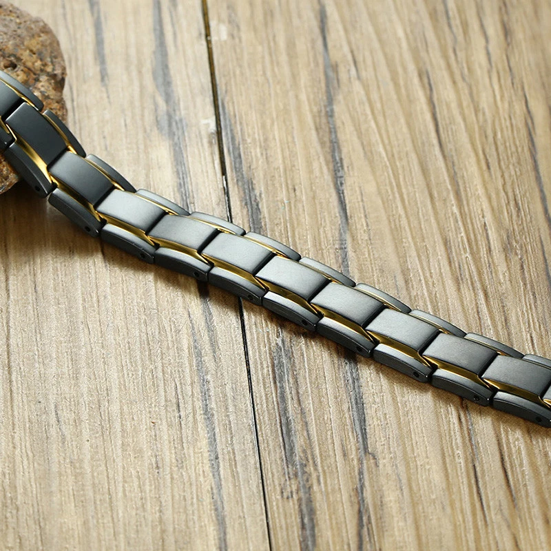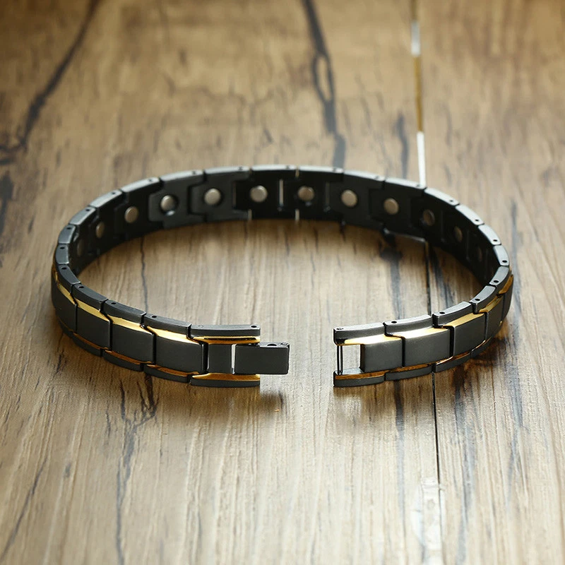 It is a good gift for your lover,friend, father or brother Trusted pain relief for arthritis carpal tunnel for health Color: Black with Gold Line Material: Stainless Steel + Magnet Size: about 12 mm * 270 mm Package Included: Anklet*1pc Magnetic therapy is believed to help with the following: Alleviation of foot arthritic pain Reducing Inflammation Improving Blood Circulation Reduce stress, anxiety, fatigue, insomnia 4 DIFFERENT TYPES OF NATURAL PROPERTIES - - These are some of the most efficient for health therapy jewelry Earth Neodymium Magnets