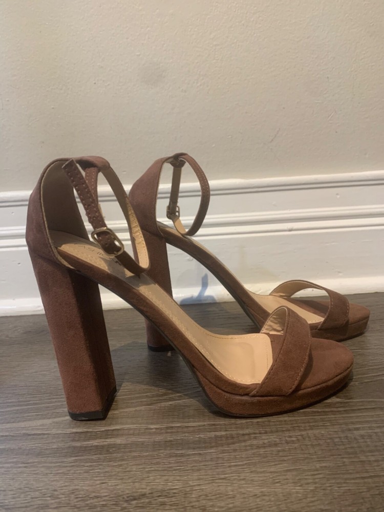 These heels are a steal! The burgundy shade is rich and versatile, perfect for dressing up any outfit. The straps give them a chic, sexy look while keeping them secure on your feet. Even pre-owned, they’re in great condition—super comfortable for a night out. Love how they elevate my style without killing my feet!