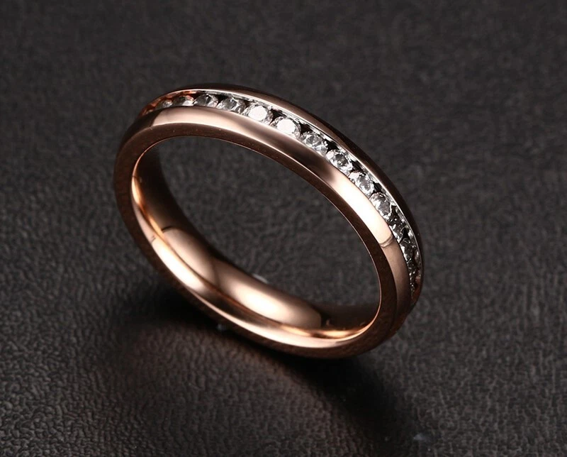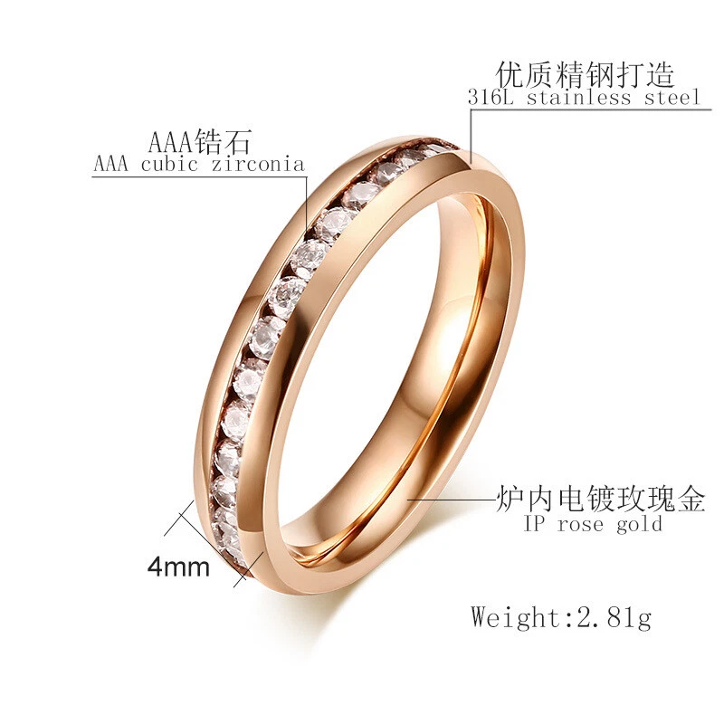 Metal: Titanium Steel Shape: Geometric Cut Grade: Excellent Band Width: 4 mm Brand: Unbranded Type: Ring Style: Korean style Base Metal: Titanium Material: Metal Color: Rose Gold Ring Size: 5-9 Number of Gemstones: 30 Main Stone Width: 4 mm