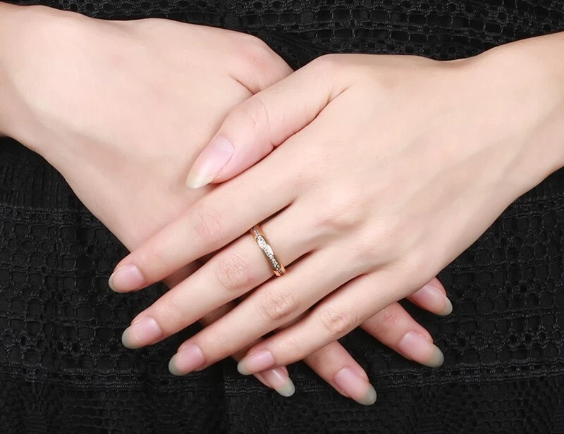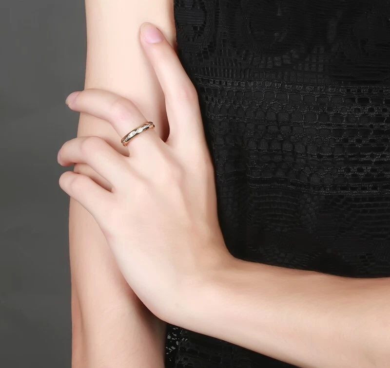 Fashion Single Row Diamond Lady Ring Titanium Steel Rose Gold Jewelry Gift Sz5-9