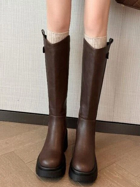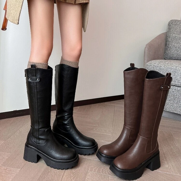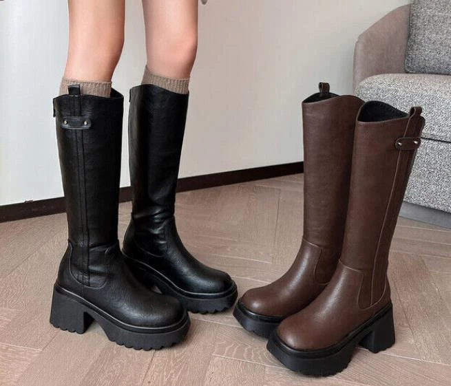 Fashion Womens Platform Riding Knight Knee High Boots Leather Block Heel sz
