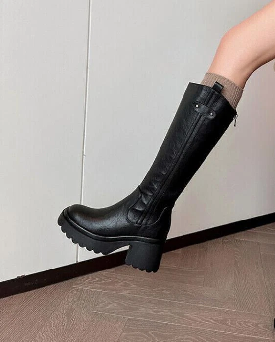 Style: Western Insole Material: Synthetic Closure: Zip Toe Shape: Closed Toe Lining Material: Synthetic Heel Height: High (3-3.9 in) EU Shoe Size: 37 Type: Boot Department: Women Pattern: Solid Heel Style: Block Shoe Width: M US Shoe Size: 7 Occasion: Casual Upper Material: Leather Outsole Material: Synthetic AU Shoe Size: 5 UK Shoe Size: 4 Theme: 80s, 90s, Retro, USA, Western Brand: Unbranded Country/Region of Manufacture: China Shoe Shaft Style: Knee High Season: Fall, Spring, Winter