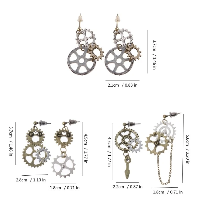 Feature: Steampunk victorian gothic industrial earrings,tool for any for time Unique affordable gift for fans of nautical steampunk Halloween Christmas birthday gifts Great gift for women, mens, teen girls, boys. Material: Alloy, Color: Antique Bronze. Size: Total Length: 3.5 for cm/1.4" Gear Diameter:1.5-2 for cm/ 0.6"-0.8" Note:1.Please allow 1-3cm error due to manual measurement. pls make sure you do not mind before you bid. 2.Due to the difference between different monitors, the picture may not reflect the actual color of the item. Thank you! Package includes: Pair x Earrings.