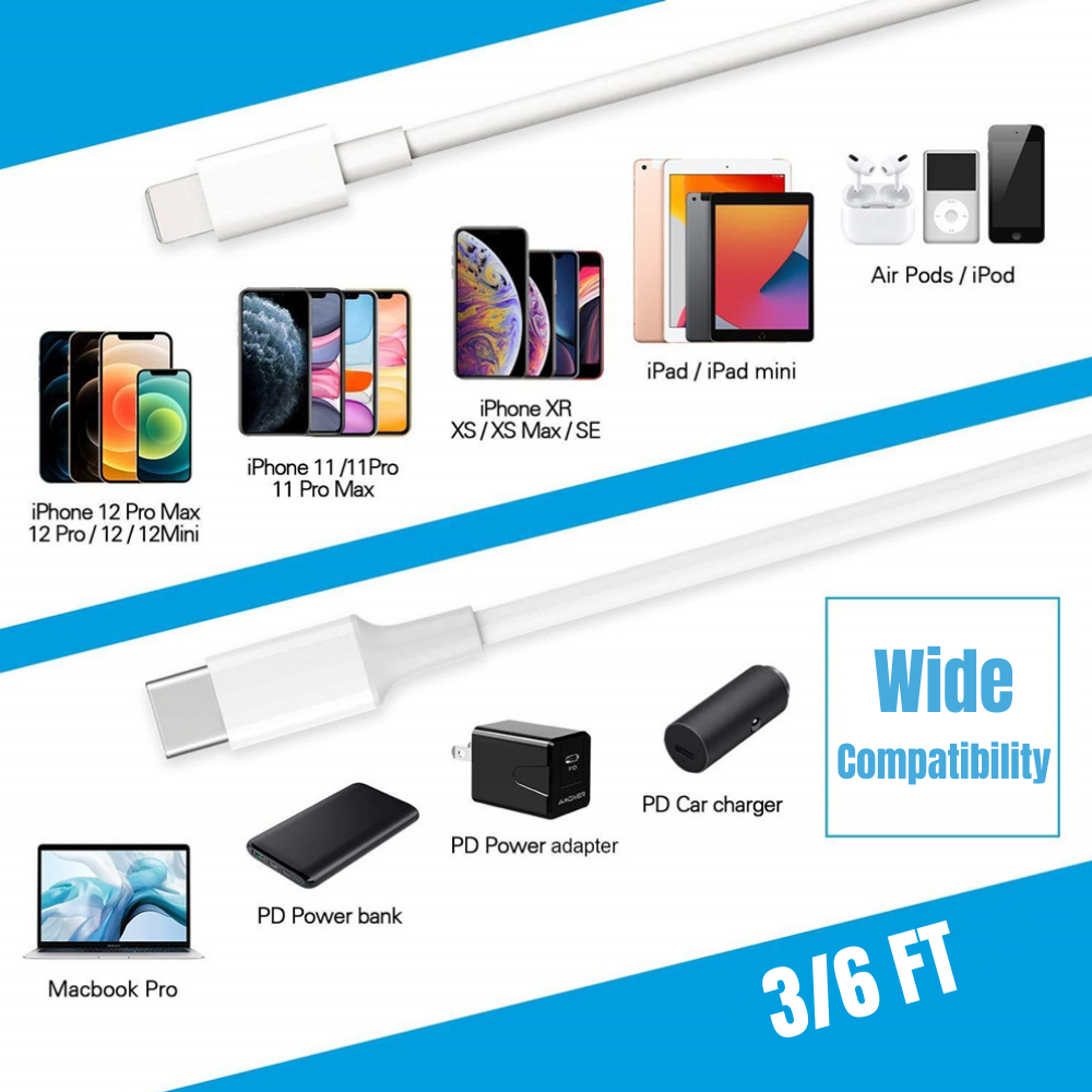 Description: 20W Fast Charger : The wall charger for iPhone 13/12/11 series supports a rapid charge up to 3A(20W Max), you can charge your Phone from 0 % to 50% in about 30 minutes. Charge 2.5x faster than the ordinary 5W charger, greatly saving your charge time. Safe and Reliable : The 20W fast charger wall adapter has multi potent safety system ensures complete protection for your devices. The wall charger built-in safeguards protect your devices against excessive current, overheating, and overcharging. Our charging cable is built with original smart chip, fit for iPhone compatibility and without error message pop up. Durable Design: 20W USB-C power adapter built with robust casing and premium internal components can withstand scratches, bumps or drops. High-class connector and copper core wire enhance durability. Comprehensive Compatibility : For iPhone 13/13 Mini/13 Pro/13 Pro Max For iPhone 12/12 Mini/12 Pro/12 Pro Max For iPhone 11/11 Pr/11 Pro Max For iPhone XS/XS Max For iPhone XR/X For iPhone 8/8 Plus For iPad Pro 10.5”/ iPad Air 3 10.5”/ iPad Mini5 7.9” and more.