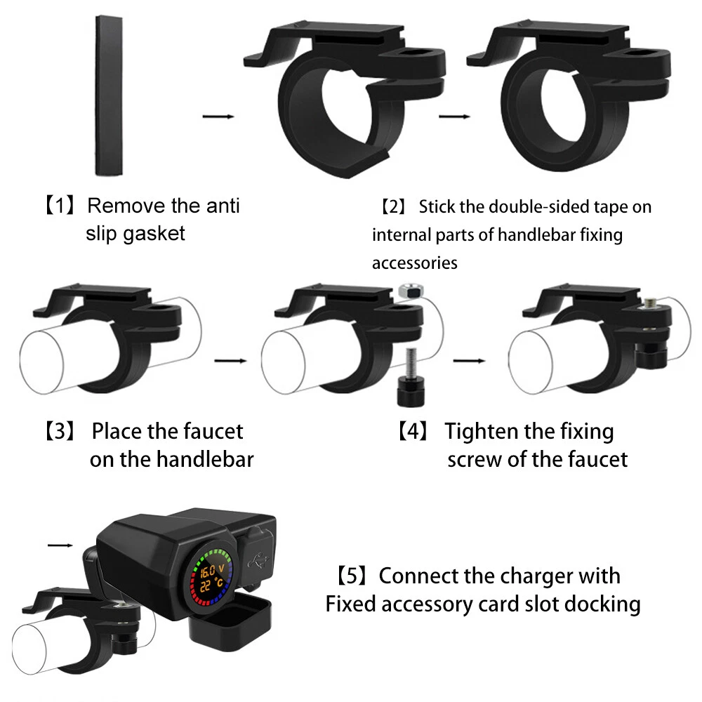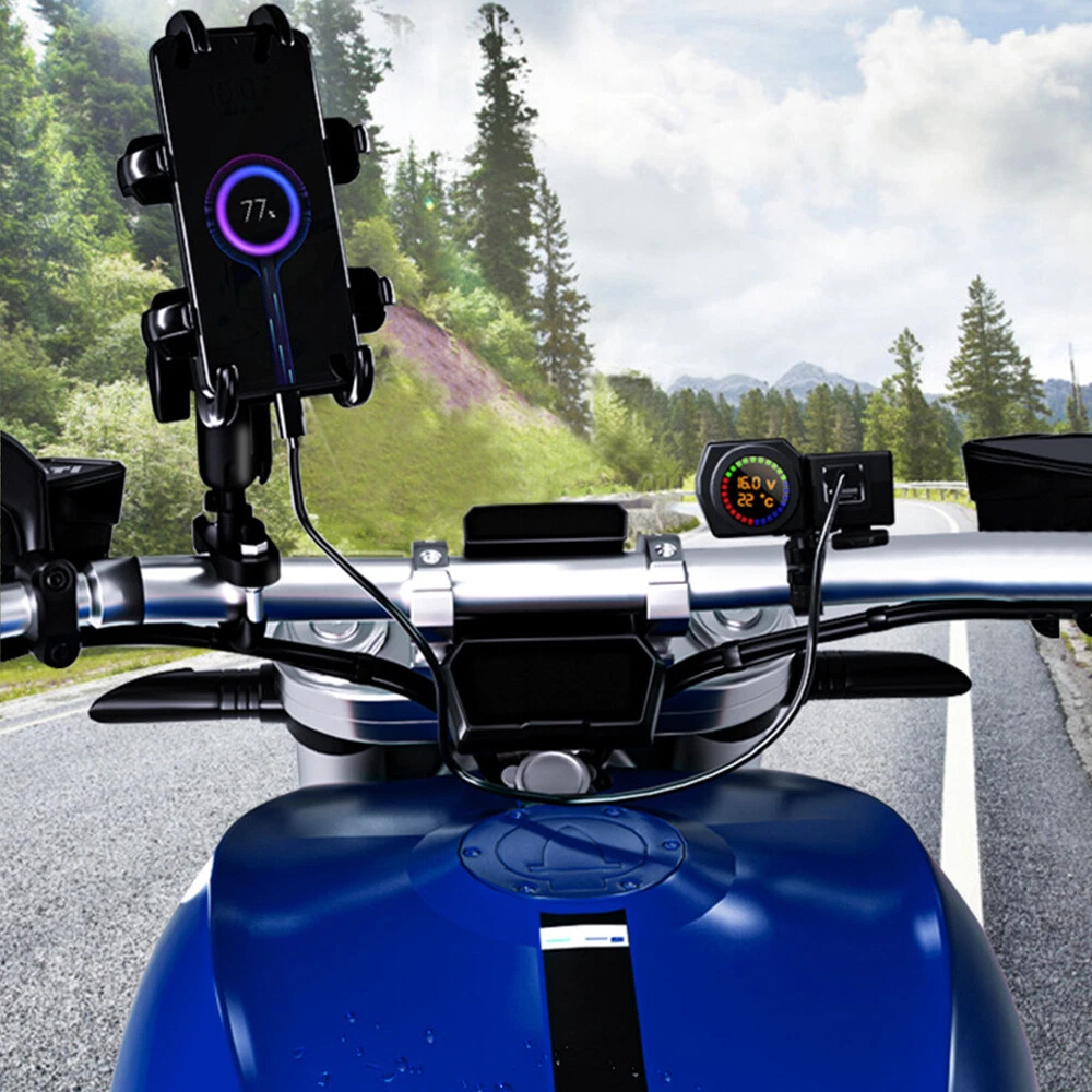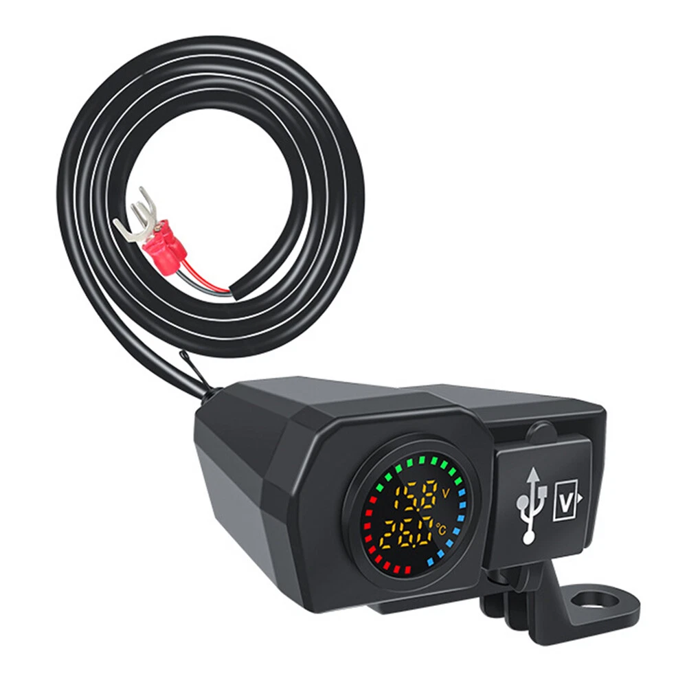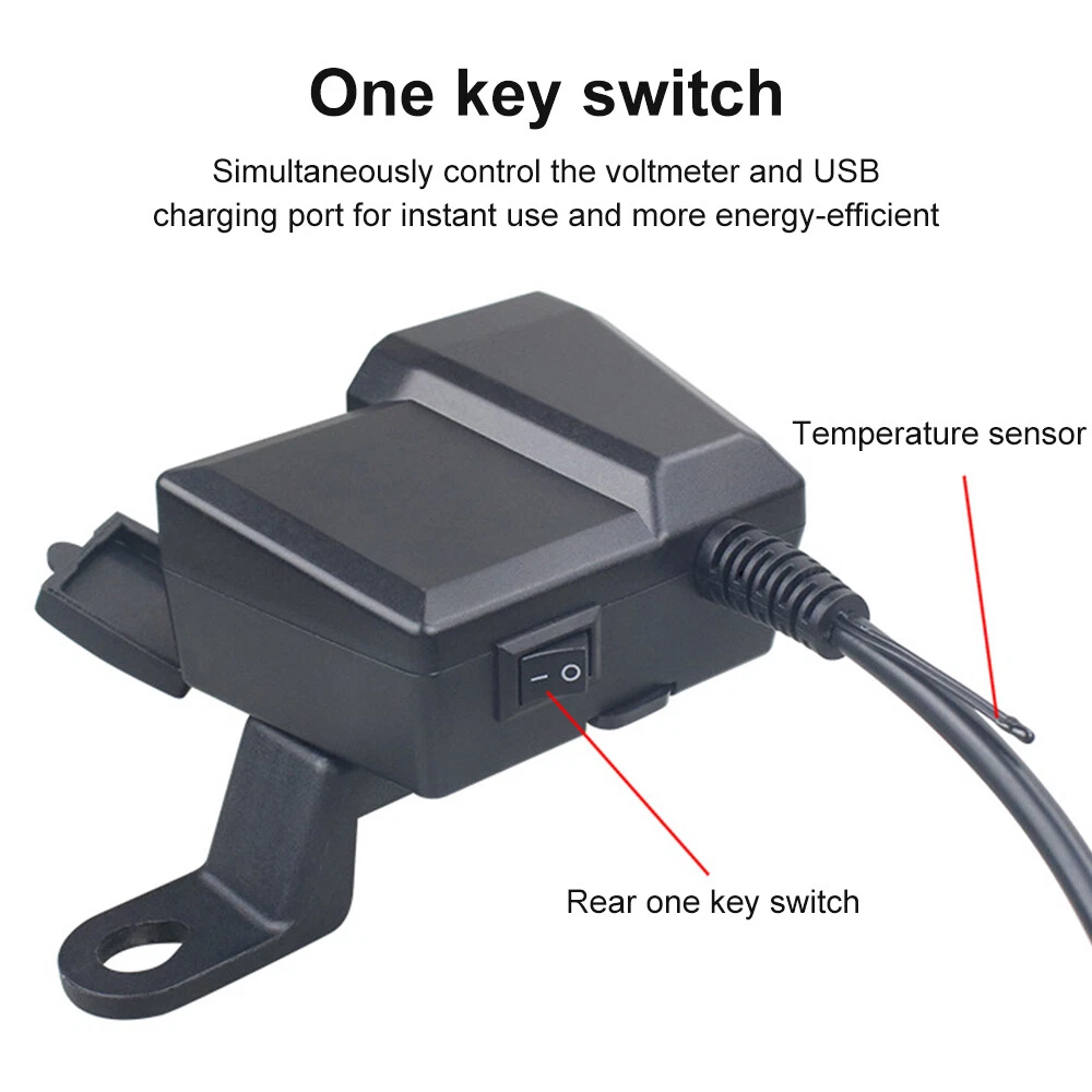 Features: 1.Accurate digital display escort: real-time presentation of voltage and temperature data, just like having a car safety steward, control the charging status at any time, escort for every trip, effectively prevent potential risks, so that the journey is worry-free. 2. Dual charging efficient and convenient: equipped with dual USB ports, perfectly adapted to various types of digital devices, easy to realize the rapid charging of two devices at the same time, say goodbye to power anxiety, whether it is a cell phone navigation or car recorder, can always maintain a full state of power, enhance travel efficiency. 3. Switch control: independent switch design, simple and convenient operation, with the use of open, closed when not in use, not only energy saving, but also effectively avoid the potential safety hazards that may be caused by prolonged energization, so that your use of more worry, peace of mind. 4. Waterproof, dustproof and durable: professional waterproof design with dustproof and waterproof cover, fearless of rain, dust and other harsh environments, to ensure stable operation of the internal circuitry, which greatly extends the service life of the product, whether it is muddy cross-country road or wet rainy season, can be a stable power output. 5. Intelligent protection and worry-free: advanced intelligent protection system, all-round monitoring of current, voltage and other key parameters, in case of abnormalities, automatic power-off protection, to reduce the safety risk of the power of science and technology, to provide a solid and reliable security for your cycling charging process, to enjoy a worry-free journey. Specification: Item: Motorcycle Dual PD USB Charger Material: PC Input voltage: 12-24V Output voltage: 5/9/12V Voltage measurement range: 6V-30V USB output: 60W(QC3.0 30W + PD30W) Size: 77x59x36mm Cable length: 90cm Mounting method: handlebar/mirror stand (with mounting bracket) Connection method: red wire to power positive, black wire to power negative Package List: 1 x Motorcycle USB Charger 2 x Mirror mounting bracket 1 x Handlebar mounting bracket 1 x Anti-skid gasket 6 x Screws and nuts accessories Note: Due to different light and screen settings, the item color may be slightly different from the picture. Please allow 1-2cm size difference due to different manual measurement. On Dec 23, 2024 at 19:38:17 PST, seller added the following information: