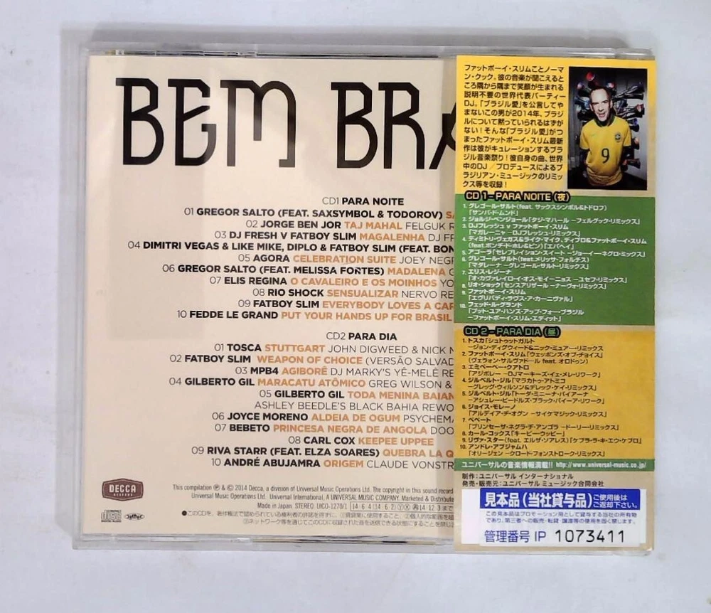 1-1 Gregor Salto Feat. Saxsymbol & Todorov*– Samba Do Mundo 4:05 1-2 Jorge Ben Jor*– Taj Mahal (Felguk Remix) 5:39 1-3 DJ Fresh* V Fatboy Slim– Magalenha (DJ Fresh Remix) 3:21 1-4 Dimitri Vegas & Like Mike, Diplo & Fatboy Slim Feat. Bonde Do Role & Pin (11)– Eparrei 3:02 1-5 Agora– Celebration Suite (Joey Negro Mix) 6:31 1-6 Gregor Salto Feat. Melissa Fortes– Madalena (Gregor Salto Remix) 6:01 1-7 Elis Regina– O Cavaleiro E Os Moinhos (Yousef Remix) 7:00 1-8 Rio Shock– Sensualizar (Nervo Remix) 5:17 1-9 Fatboy Slim– Everybody Loves A Carnival 5:52 1-10 Fedde Le Grand– Put Your Hands Up For Brasil (Fatboy Slim Edit) 4:28 Para Dia 2-1 Tosca– Stuttgart (John Digweed & Nick Muir Remix) 6:58 2-2 Fatboy Slim Feat. Olodum– Weapon Of Choice (Versão Salvador) 4:44 2-3 MPB4– Agiborê (DJ Marky's Yé-Melê Rework) 5:02 2-4 Gilberto Gil– Meracatu Atômico (Greg Wilson & Derek Kaye Remix) 6:08 2-5 Gilberto Gil– Toda Menina Baiana (Ashley Beedle's Black Bahia Rework) 5:09 2-6 Joyce Moreno– Aldeia De Ogum (Psychemagik Remix) 6:15 2-7 Bebeto– Princesa Negra De Angola (Doorly Remix) 6:04 2-8 Carl Cox– Keepee Uppee 5:35 2-9 Riva Starr Feat. Elza Soares– Quebra La Que Eu Quebro 5:47 2-10 André Abujamra– Origem (Claude VonStroke Remix) 6:56