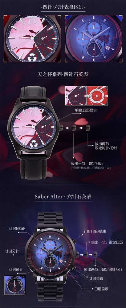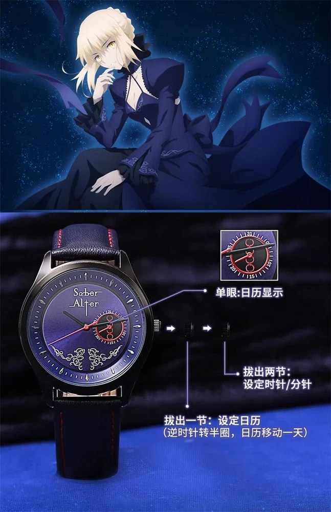 Fate/stay night Saber Alter Quartz Sakura Matou Rin Tohsaka Watch Wristwatch 100% Brand New & High Quality Color: (As Shown in Picture) Saber Alter - 6 Needle Watch Display Mode: 12 Hours/ Calendar Material: Alloy case, Stainless steel strap Display Time: Calendar/Hour/Minute/Second Size: Case Diameter: Approximately 4cm Case Thickness: Approximately 1cm Strap Width: Approximately 2cm Watch Length: Approximately 24cm Dial difference: 4 Needle small dials (calendar display) Average One - 4 Needle Watch Grail of Makiri - 4 Needle Watch Display Mode: 12 Hours/ Calendar Material: Alloy case, leather strap Display Time: Calendar/Hour/Minute/Second Small Dial: Timing Function Size: Case Diameter: Approximately 4cm Case Thickness: Approximately 1cm Strap Width: Approximately 2cm Watch Length: Approximately 24cm Dial difference: 6 Needle small dials (timing minute hand, second hand, 1/10 second hand) EMIYA - 4 Needle Watch Saber Alter - 4 Needle Watch Display Mode: 12 Hours/ Calendar Material: Alloy case, leather strap Display Time: Calendar/Hour/Minute/Second Size: Case Diameter: Approximately 4cm Case Thickness: Approximately 1cm Strap Width: Approximately 2cm Watch Length: Approximately 24cm Dial difference: 4 Needle small dials (calendar display) Package: 1 Watch Theme Anime Character Family Fate/stay night Character Saber Alter, Sakura Matou, Rin Tohsaka, EMIYA Type Wristwatch Style Modern Case Material Alloy Case Size 40 mm Case Thickness 10 mm Band Width 2 cm Watch Length Approximately 24cm Display Analog & Digital Movement Quartz Closure Buckle Features Chronometer Year Manufactured 2024 Department Unisex Adults Country/Region of Manufacture China Brand Unbranded