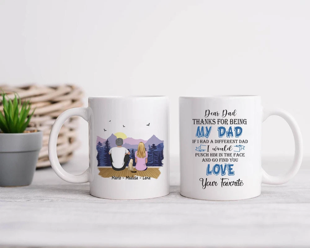 Father And Daughter Coffee Mug Dear Dad Thanks For Being My Dad Coffee Mug Product Details.. This high quality 11oz. ceramic white mug has a premium hard coat that provides crisp and vibrant color reproduction sure to last for years. Perfect for all hot & cold beverages. The highest quality printing possible is used. It will never fade no matter how many times you wash it. Material: 100% Ceramic. Print both sides. Dishwasher and Microwave Safe. High Gloss + Premium White Finish. Printed in the U.S.A. Personalized & Custom. We support personalized and custom mug to add custom, when placing an order, you can add notes to the "order note" in shipping address section. Also you can contact us directly via message. Shipping Info. Ready to ship in 1 to 2 business days, All products are made-to-order and proudly printed in the United States. Shipped by USPS and DHL, You will receive your order in 5-7 days. Replace & Refund. All products are defective during shipping broken, chipped will be replaced free of charge. You are not satisfied with the product, we will refund 100% money to you. If any other issues arise, please do not hesitate to message, we would be more than happy to assist you.