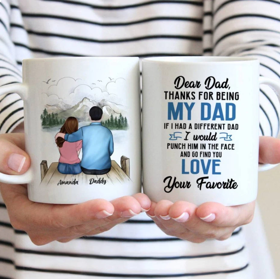 Father And Daughter Coffee Mug Dear Dad Thanks For Being My Dad Coffee Mug Product Details.. This high quality 11oz. ceramic white mug has a premium hard coat that provides crisp and vibrant color reproduction sure to last for years. Perfect for all hot & cold beverages. The highest quality printing possible is used. It will never fade no matter how many times you wash it. Material: 100% Ceramic. Print both sides. Dishwasher and Microwave Safe. High Gloss + Premium White Finish. Printed in the U.S.A. Personalized & Custom. We support personalized and custom mug to add custom, when placing an order, you can add notes to the "order note" in shipping address section. Also you can contact us directly via message. Shipping Info. Ready to ship in 1 to 2 business days, All products are made-to-order and proudly printed in the United States. Shipped by USPS and DHL, You will receive your order in 5-7 days. Replace & Refund. All products are defective during shipping broken, chipped will be replaced free of charge. You are not satisfied with the product, we will refund 100% money to you. If any other issues arise, please do not hesitate to message, we would be more than happy to assist you.