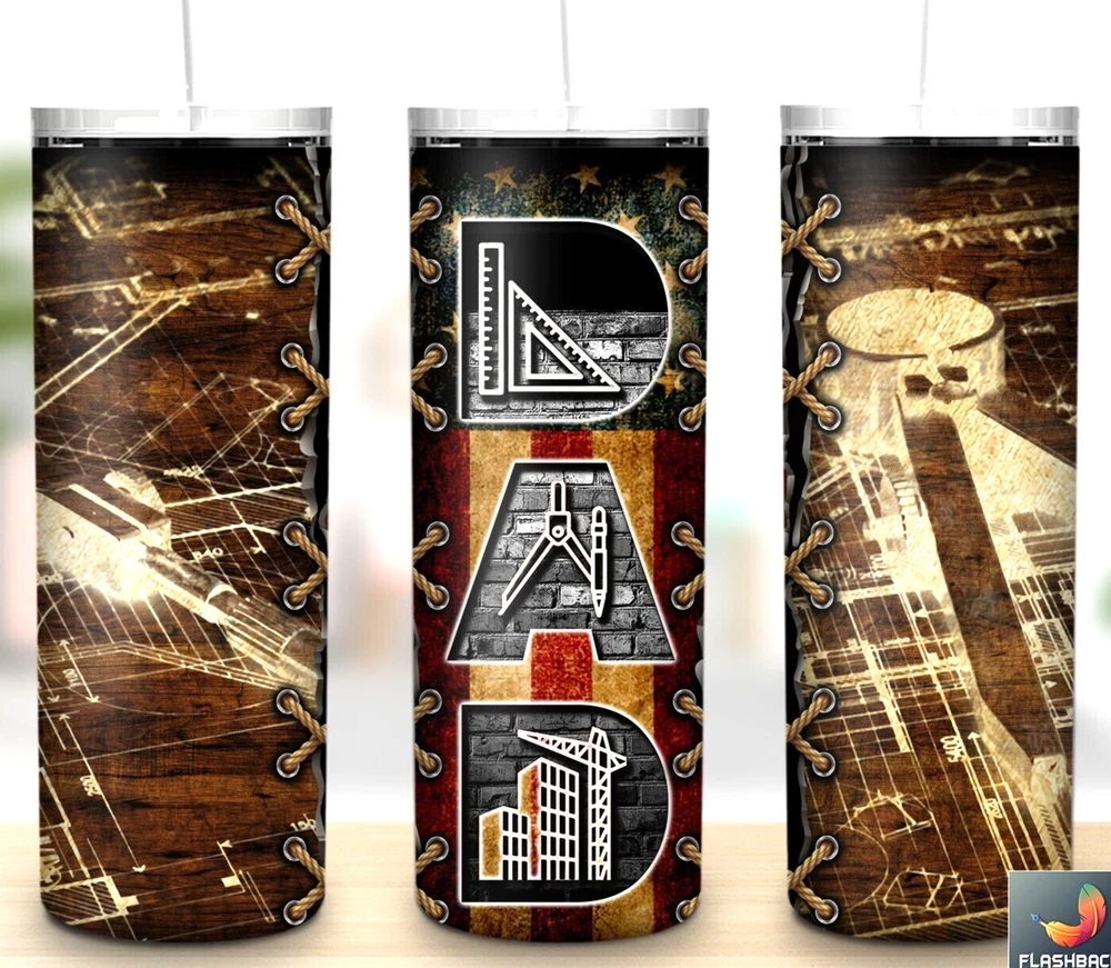Fathers Day Architect 4 Multicolor 20oz Insulated Tumbler Lid Clear Straw New