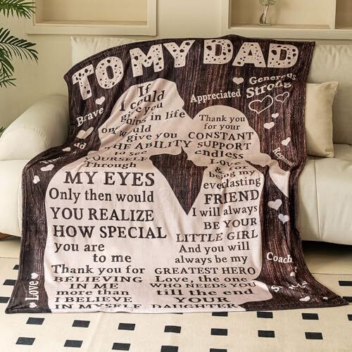 Return Policy Fast Delivery Trusted seller Fathers Day Blankets Gifts for Dad, Blanket to My Dad Gifts from Daughter, Dad Blanket Presents for Fathers Day, I Love You Dad Letter Warm Soft Throw Blankets, 70"x 50" Product Description Soft and plush: The flannel fleece material is incredibly soft to the touch, providing warmth and comfort for your dad to relax and unwind. Durable and long-lasting: The high-quality flannel material is durable and designed to withstand frequent use, ensuring that your dad can enjoy the blanket for years to come. Stylish design: The blanket comes in a stylish design that complements any decor, adding a touch of elegance to your dad's living space. Easy to care for: The blanket is easy to clean and maintain, making it a practical and convenient gift for your dad. Versatile use: Whether your dad wants to snuggle up on the couch, stay warm while watching TV, or add an extra layer of comfort to his bed, this flannel fleece blanket is perfect for all occasions. Shipping Returns Payment Shipping Shipping is FREE to all addresses other than APO/PO boxes in the lower 48 states. All our stock ships from US-based warehouses. Shipped via USPS or UPS (depending on location and package weight) Unless stated otherwise, all orders will ship within 24-72 hours of your payment being processed. Check our feedback to see the great reviews of FAST shipping we offer. Returns Seller does not accept returns Payment We currently accept payment via eBay managed payments only. Once payment is cleared, we will dispatch your shipment within 1-3 business days. Please refer to the "Shipping" tab for more information regarding shipping speed to your destination.