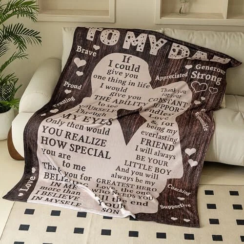 Menu 1. We require immediate payment. 2. We currently accept payment via eBay managed payments only. 3. Once payment is cleared, we will dispatch your shipment within 1-3 business days. Please refer to the "Shipping" tab for more information regarding shipping speed to your destination. Fathers Day Blankets Gifts for Dad, Blanket to My Dad Gifts from Son, Dad Blanket Presents for Fathers Day, I Love You Dad Letter Warm Soft Throw Blankets, 70"x 50" Product description Soft and plush: The flannel fleece material is incredibly soft to the touch, providing warmth and comfort for your dad to relax and unwind. Durable and long-lasting: The high-quality flannel material is durable and designed to withstand frequent use, ensuring that your dad can enjoy the blanket for years to come. Stylish design: The blanket comes in a stylish design that complements any decor, adding a touch of elegance to your dad's living space. Easy to care for: The blanket is easy to clean and maintain, making it a practical and convenient gift for your dad. Versatile use: Whether your dad wants to snuggle up on the couch, stay warm while watching TV, or add an extra layer of comfort to his bed, this flannel fleece blanket is perfect for all occasions. PLEASE MESSAGE US IF YOU HAVE ANY OTHER QUESTIONS, AND MANY THANKS FOR READING ALL OF THIS. Copyright ©#. All Rights Reserved.