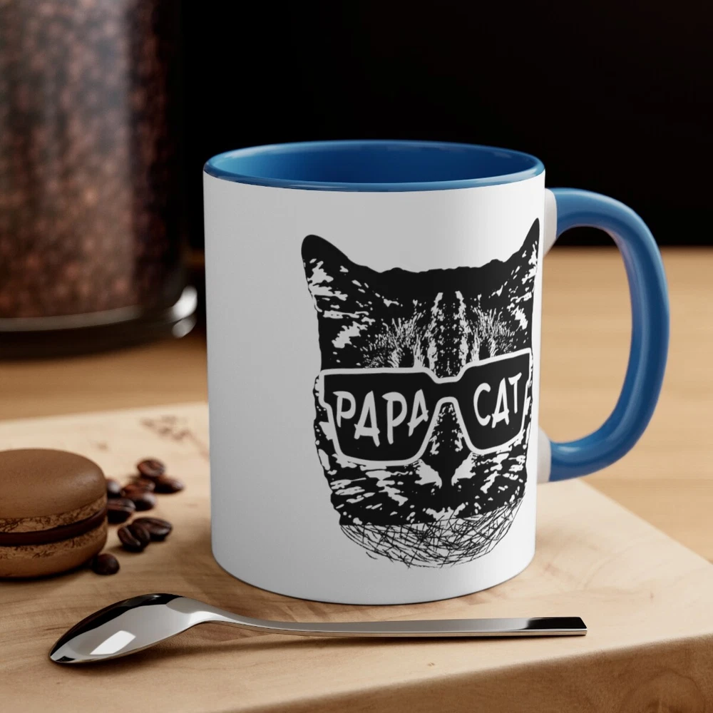 Celebrate the loving and nurturing side of dads and grandads with the "Papa Cat" coffee mug. This 11oz ceramic mug is the perfect Father's Day gift for animal lovers who proudly embrace their role as the family's "Papa Cat." With a delightful design featuring the words "Papa Cat" alongside a charming cat illustration, this mug is a daily reminder of their affectionate and caring nature. The sturdy construction ensures durability, while the comfortable handle makes it easy to enjoy a cup of coffee or tea. Whether it's a morning pick-me-up or a relaxing evening beverage, this mug is a heartfelt and thoughtful gift choice that will bring a smile to any dad or grandad who adores cats and cherishes their role as a loving and protective figure in the family. Capacity: 11oz - suitable for hot and cold drinks. Material: 100% Ceramic. Dishwasher Safe, Microwave Safe. Printed on both sides - High Gloss Finish - Image will not fade, peel, or scratch off. Perfect for Coffee, Hot Chocolate, Tea, and other hot or cold drinks. Made to order and made in the USA! Delivery includes 5 business days handling time after receipt of cleared payment.