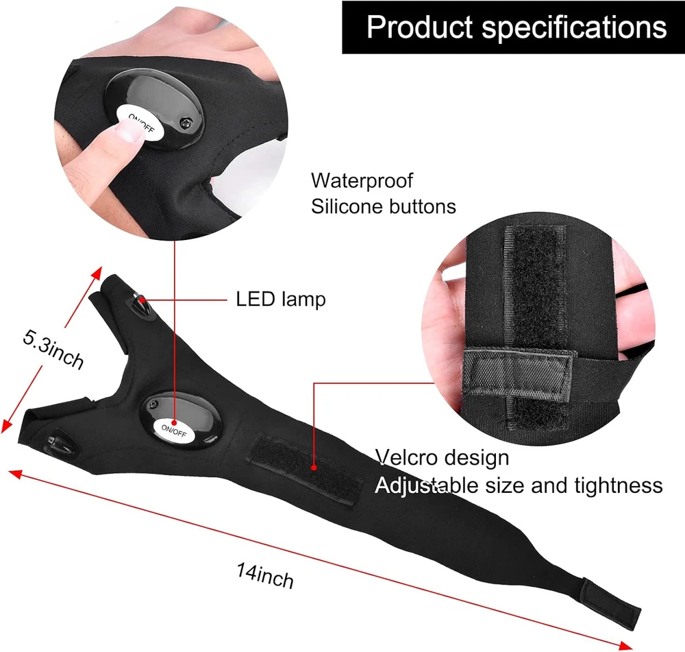 Fathers Day Dad Gifts Birthday Gadgets from Daughter Wife Black Product Features Valentines Day Gifts for Him: A unique and cool galentines day easter basket gift for men,husband,Him,Boyfriend. Stocking Stuffers Christmas Cool Gadgets Ideas: Wearing this just like wearing ordinary. And then adjust comfortable size to fix .Designed with a turn on/off button on the surface, It is convenient and easy for you to turn on or turn off when using it, and you can replace the battery easily with screwdriver. Adjustable Free Size: Made of cotton, breathable and soft The adjustable Velcro Strap can stretch to fit different sizes of hand, even big hands, the straps on the wrists are adjustable, you can adjust to fit your own size, not be loose easily when working due to nice elasticity, the strong Velcro tape can secure the gloves on you hand tightly. Wide Occasion Application: Suitable for outdoor night fishing, hunting, running, repair, camping, climbing, hiking, dog walking,travel a practical , unusual tool gadget for handymen, electrician, mechanics when work, repair, assemble needing extra light. Hand-free Gloves Gifts for Adults Who Have Everything: With 2 LED on index finger&thumb and could point to anywhere you want, bright enough for tasks. Helps a lot on working in the darkness. It's handy when no one is there to hold the light for you. Shipping: Shipping is complimentary within the lower 48 US States. We Do Not Ship to PO/APO Boxes, HI or Alaska We Do Not Ship Outside of the Continental US All items ship within 24-72 hours of Payment For large items that require Freight shipping a valid phone number is required to call and schedule your delivery Terms of Sale and Feedback: Feedback is extremely important to us and eBay If you are satisfied with our transaction, please take a moment to leave Positive Feedback. YOUR Satisfaction is our #1 Priority! If there are any issues, PLEASE contact us BEFORE leaving a neutral or negative rating so that we may resolve any concerns. We PROMISE we can make you happy if you give us a fair chance. Returns / Concerns: All items qualify for returns within 14 - 30 days of receipt. Buyer is responsible for return shipping on any item that is not damaged Please be sure this is an item you want before making your purchase. Customer Satisfaction is our TOP priority! All items are IN STOCK at time of listing. Inventory on eBay changes constantly and it is impossible to maintain a perfectly accurate count of all items. Please do not penalize us if we have to issue you a refund! Thank You For Your Business!