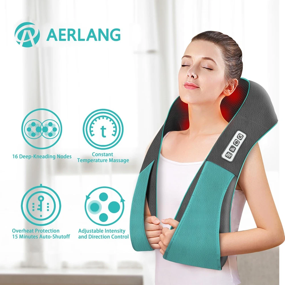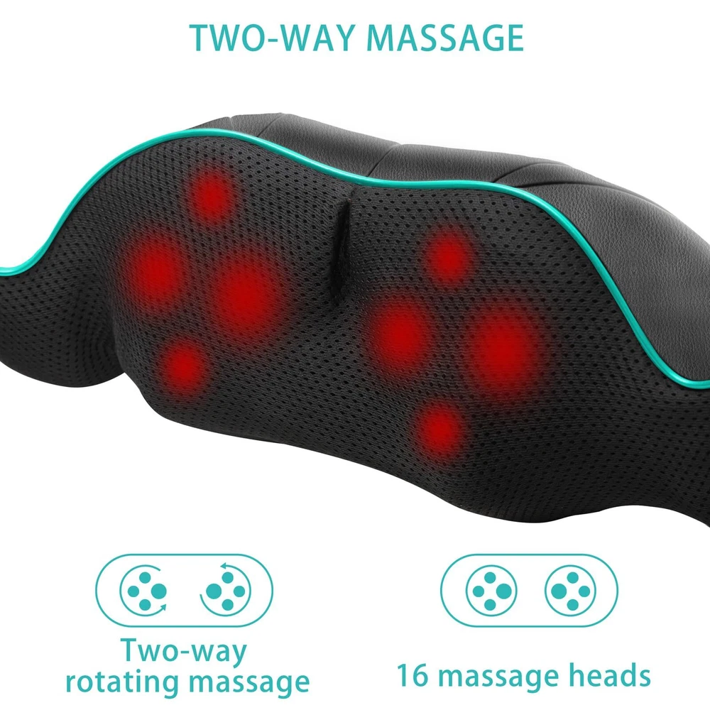 EASY&SAFE TO OPERATE&THREE CUSTOM SPEED MODES Neck massager with a unique and flexible strap, you can easily adjust . Three custom speed modes giveyou need to massage your neck. Overheat protection and 10minute auto-shutdown feature ensure safe use (Can be turned off manually) DEEPER KNEADING MASSAGE Neck massager uses eight Bi-directional rotation kneading massage heads. Back massager also capable of massaging in two directions if needed, with a simple one-button switch to choose which one. As you would expect from any back massager, the back and neck massager can also massage your back, waist, limbs, and shoulders. HEATING FUNCTION Neck massager is lightweight and comfortable to wear for a long time. Thanks to its built-in heating function, neck massager pillow for home, office, car and travel use, it has a AC adapter and a Car adapter that will be more convenient for you. DURABLE AND COMFORTABLE MATERIAL High-quality leather and breathable mesh fabric, back massager is easy to use and clean.and allow you to enjoy a relaxing massage. Back massager is a good helper for home and travel.
