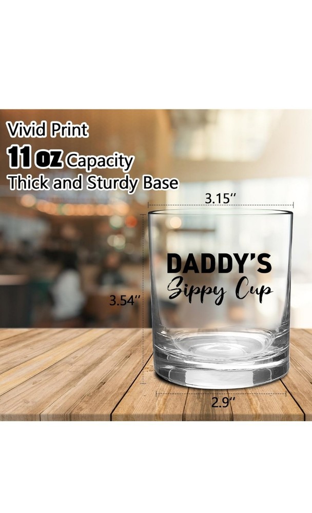 This Fathers Day, surprise your dad with this exquisite whiskey glass. The glass is beautifully engraved with "Engraving Daddy's Sippy Cup" and is perfect for any new dad, husband, son or daughter. It is made of high-quality glass and has a capacity of 11 OZ. The glass is dishwasher safe and has a special feature of being engraved, making it a unique and special gift. The product dimensions are 3.15"W x 3.62"H, and it weighs 12.3 ounces. This glass is a great way to show your appreciation for your dad and make him feel loved.