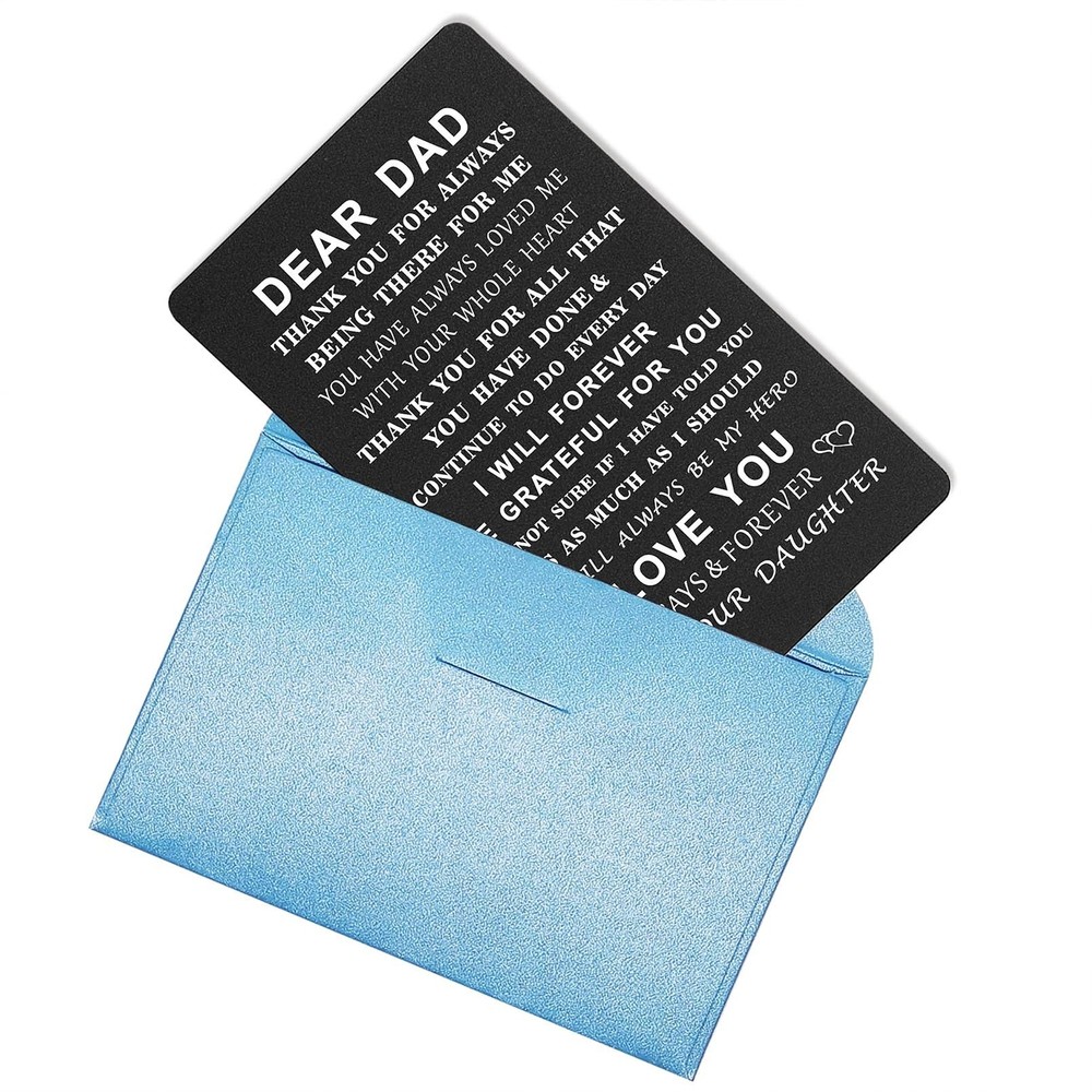 Fathers Day Dad Gifts from Daughter - Dad Wallet Card Insert - Fathers Day Card for Dad - Gifts for Dad Birthday Fahter's Day Xmas from Daughter ✓ Free 60 Day Returns ✓ Free Express Shipping Description: Features: Dad Gifts from Daughter - Dear dad, thank you for always being there for me, you have always loved me with your whole heart, thank you for all that you have done & continue to do every day.I will forever be grateful for you I am not sure if I have told you this as much as I should, you will always be my hero, I love you always &forever love, your daughter. Father's Day Gifts for Dad - Perfect gift for your father to celebrate the birthday, Father's Day, Thanksgiving, Christmas, new year, etc. Dad Christmas Gifts - Comes with a cute envelope, ready for giving. It will be perfect gift for Father's Day, birthday, Mother's Day, Christmas gift and any other occasion, or just without any special reason, to show some love to your dad , or attach this Engraved wallet matel cards to with your gifts. Dad Birthday Card - It fits Perfectly in Any Wallet, You will receive one engraved metal card, measure approximately credit card sized (Just 3.35" x 2.17" x 0.03"). One Side Engraved Only, Wallet Not Included. OUR PROMISE - You will be 100% satisfied with our product! TGCNQ is so confident you will love their products, if you are not completely satisfied, you will get a prompt refund or replacement, no questions asked. Product Details: Manufacturer: TIMTOPWORKSHOP Brand: TGCNQ Item Weight: 0.528 ounces Product Dimensions: 3.35 x 2.17 x 0.01 inches Item model number: T2025 Color: Black Pre-printed: thank you Number of Items: 1 Manufacturer Part Number: T2025 Date First Available: September 14, 2020
