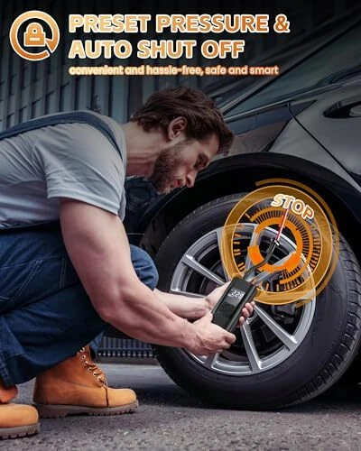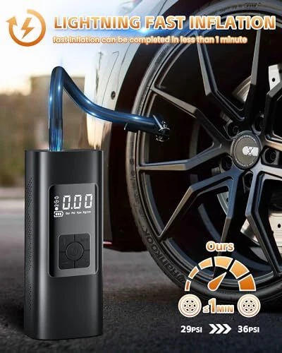 Return Policy Fast Delivery Trusted seller Fathers Day Dad Gifts from Daughter Son Wife, Tire Inflator Portable Air Compressor - 150PSI Rechargeable Air Pump for Car Tires Cordless Car Accessories for Bike Motorcycle Balloon (Black) Product Description Easy To Use : The tire inflator is very easy to operate. Simply turn the tire inflator on, press the nozzle into the tire valve, switch pressure units (psi, bar, kPa, kg/cm²) at the touch of a button and activate the switch after accurately presetting the tire pressure. It will automatically inflate and stop when it reaches the specified value, so you don't need to worry about over-inflating your tires. Fast Inflate & Save Time : The tire inflator is powered by a high quality high power motor, which is less noisy and more powerful, with a maximum pressure of 150PSI. It can inflate a standard mid-size car tire from 0 to 35PSI in 8 minutes.?Please note that after 8 minutes of continuous use, allow the tire inflator to rest for 5-10 minutes before continuing to use it. Effectively Meet The Inflation Needs : The tire inflator is made of high quality aluminum alloy material, built-in 6000mAh high capacity battery, equipped with high precision and high brightness LCD digital display, easy to read the tire pressure, help you to check the tire pressure and preset the tire pressure value. Built-in bright and long-lasting LED light can meet your inflation needs in low light environment. Multi-Purpose & Easy To Store : Tire pump with 4 extra nozzles can meet a variety of needs for inflatable products such as car tires and sports or recreational equipment. Such as cars, SUVs, motorcycles and bicycles, swimming rings, balls, etc. (❣ Not suitable for large truck tires.) Black storage bag is easy to carry and store. Great Gifts For Your Husband/Father : Are you still struggling with what to give your husband/father for his birthday & holidays? Our inflator pump can be the perfect solution to your problem! The tire inflator is packaged in a beautiful gift box, perfect as a gift for your most important one. Shipping Returns Payment Shipping Shipping is FREE to all addresses other than APO/PO boxes in the lower 48 states. All our stock ships from US-based warehouses. Shipped via USPS or UPS (depending on location and package weight) Unless stated otherwise, all orders will ship within 24-72 hours of your payment being processed. Check our feedback to see the great reviews of FAST shipping we offer. Returns Seller does not accept returns Payment We currently accept payment via eBay managed payments only. Once payment is cleared, we will dispatch your shipment within 1-3 business days. Please refer to the "Shipping" tab for more information regarding shipping speed to your destination.