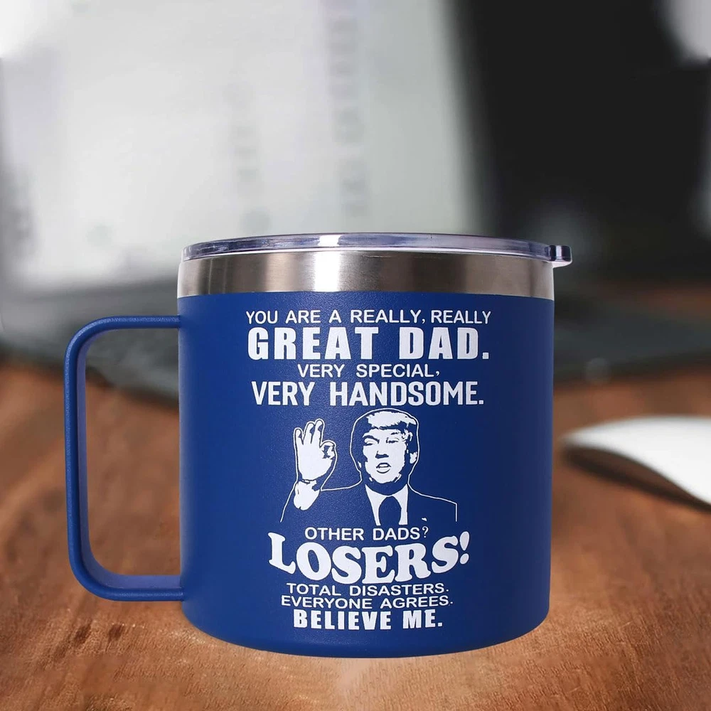 Store New Arrivals Add to Favorite View Feedback Contact Fathers Day Dad Gifts from Daughter Son,Birthday Gifts for Dad,Stepdad,Father-In Law,Daddy - Gift for Men Papa Grandpa Uncle -14 Oz Blue Tumbler Mug Description Item model number PC261 Style Modern Number of Items 1 Pattern Letter Print Theme Birthday,Christmas Unit Count 1.0 Count Material Stainless Steel Capacity 14 ounces Age Range (Description) Adult Included Components Holder Reusability Reusable Customer Package Type FFP Item Weight 12 ounces Material Feature Insulated Special Feature Leak Proof Color Dad Gifts Blue Shape Round Recommended Uses For Product Home, Travel Product Dimensions 4.2 x 4.2 x 4.5 inches Product Care Instructions Hand Wash Only Size 14 Ounces Funny GIFTS:The cup is very suitable for birthday,anniversary,Valentine's Day,Thanksgiving Day,Father's Day,Christmas and other important holiday or occasion to give to father. GIFT FOR ANY OCCASION:Perfect for office,party,vehicle and home.Imagine your father drinks coffee,water,beer from his new tumbler,He will tell you that you found he favorite gift! HIGH QUALITY:Featuring a leakproof cap.The cup body is made from food-grade stainless steel,double-wall vacuum,durable,unbreakable,rust-resistant,keep your drinks ice cold longer and warm beverages piping hot. CUP HOLDER FRIENDLY:The Christmas tumbler design will fit most car,vehicle,bike,and boat cup holders and with a 14 oz capacity TRAVEL READY:Carry around your beverages whether out at the mall,soccer game,or park.Stay refreshed and hydrated no matter what adventure life takes you on. Product description ABOUT US We offer the best prices around on high quality products. Our E-store includes media such as books, movies, music and games while offering electronics, toys, sporting apparel, clothing, tools, general home, garden items and more. SHIPPING We are always working hard to ensure your package arrives as soon as possible. Please understand that some factors like weather, high postal traffic, and the performance of shipping companies are outside of our control. We offer free shipping to the lower 48 states and ship within 2 business days of payment, usually sooner. We do not accept P.O. Boxes. Please provide a physical address. For shipping outside of the continental USA, we only use eBay's Global Shipping Program.The item is shipped to KY and then sent to the rest of the world. International customers are responsible for all duties and taxes. Continue to check out in order to calculate costs for shipping the item to your country. Messages regarding eBay's Global Shipping Program MUST be directed at eBay EXCLUSIVELY. RETURNS We offer a 30-Day Return Policy on items which you are not completely satisfied with. You have the option for a full-refund or an exchange of the item. No returns are available on items shipped outside of the USA. PAYMENT We accept PayPal. CONTACT US This page content is yet to come Please ad us to your favorite seller and visit again later Thank You CUSTOMER SATISFACTION We try our very best to make sure every customer is completely satisfied. If there's a problem, message us! We're happy to help. WE ACCEPT