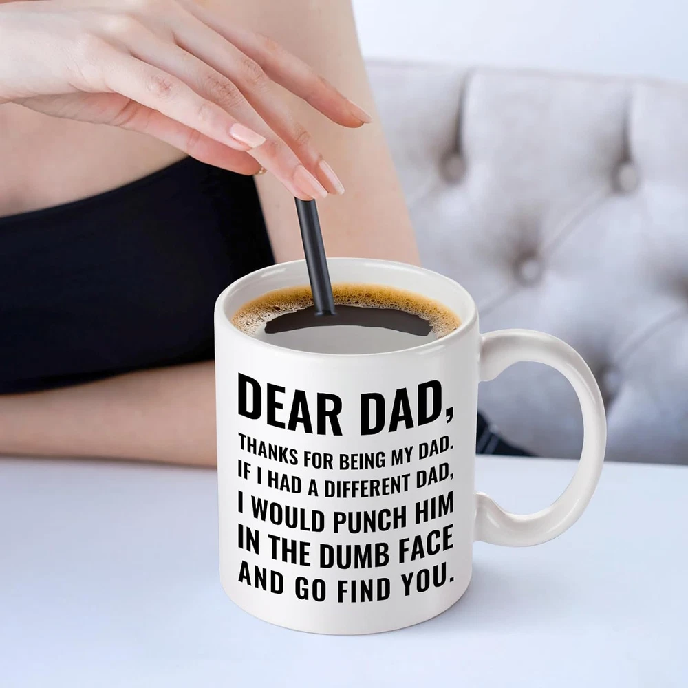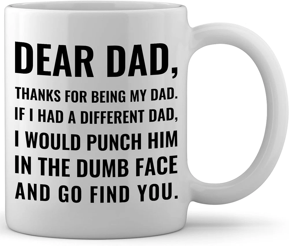 Store New Arrivals Add to Favorite View Feedback Contact Fathers Day Dad Gifts from Son Daughter, Men Gifts Birthday Gifts for Dad, Father'S Day Gifts for Dad, Cool Gifts for Dads, Step Dad Fathers Day New Dad Gifts, Funny Coffee Mug Tea Cup, 11Oz Description Item model number Gifts for Dad Style Unique Number of Items 1 Pattern Letter Print Country of Origin USA Theme Father-Child Relationship Unit Count 1.0 Count Material Ceramic Capacity 11 Fluid Ounces Product Dimensions 3"W x 4"H Package Type FFP Age Range (Description) Adult Finish Type Glossy Specific Uses For Product Cold Drinks, Hot Drinks Included Components Handle Reusability Reusable Item Weight 5 ounces Occasion Dad Gifts Special Feature Microwave Safe, Dishwasher Safe Color White Shape Round Recommended Uses For Product Home Product Care Instructions Dishwasher Safe Size Medium Fathers Day Gifts for Dad | Dad Birthday Gift | Dad Gifts | Fathers Day Gifts from Son & Daughter | Men Gifts | Birthday Gifts for Dad | Gifts for Dad Who Wants Nothing | Father's Day Gifts for Dad | Cool Gifts for Dads | Step Dad Fathers Day Gifts | Father's Day Gift | New Dad Gifts | Funny Fathers Day Gifts | Funny Coffee Mug Tea Cup FATHERS DAY GIFTS FOR DAD - This isn't just any mug; it's a laugh-out-loud gift for Father's Day. The hilarious message will have Dad chuckling every morning with his coffee. DAD GIFTS - The mug features a standout text that reads: "DEAR DAD, THANKS FOR BEING MY DAD. IF I HAD A DIFFERENT DAD, I WOULD PUNCH HIM IN THE DUMB FACE AND GO FIND YOU." It's guaranteed to leave an impression and remind Dad how special he is. FATHERS DAY GIFTS FROM DAUGHTER - Crafted from premium ceramic, this mug is built to last. It's perfect for hot or cold beverages and dishwasher safe, making it a practical yet fun addition to any dad's kitchen. FATHERS DAY GIFTS FROM SON - With an ideal capacity for his favorite drink, this mug is just right for coffee, tea, or any beverage Dad enjoys. It's not just a gift; it's a daily reminder of your love and appreciation, delivered with a hearty laugh. Product Description DAD! FUNNY GIFT READY! ABOUT US We offer the best prices around on high quality products. Our E-store includes media such as books, movies, music and games while offering electronics, toys, sporting apparel, clothing, tools, general home, garden items and more. SHIPPING We are always working hard to ensure your package arrives as soon as possible. Please understand that some factors like weather, high postal traffic, and the performance of shipping companies are outside of our control. We offer free shipping to the lower 48 states and ship within 2 business days of payment, usually sooner. We do not accept P.O. Boxes. Please provide a physical address. For shipping outside of the continental USA, we only use eBay's Global Shipping Program.The item is shipped to KY and then sent to the rest of the world. International customers are responsible for all duties and taxes. Continue to check out in order to calculate costs for shipping the item to your country. Messages regarding eBay's Global Shipping Program MUST be directed at eBay EXCLUSIVELY. RETURNS We offer a 30-Day Return Policy on items which you are not completely satisfied with. You have the option for a full-refund or an exchange of the item. No returns are available on items shipped outside of the USA. PAYMENT We accept PayPal. CONTACT US This page content is yet to come Please ad us to your favorite seller and visit again later Thank You CUSTOMER SATISFACTION We try our very best to make sure every customer is completely satisfied. If there's a problem, message us! We're happy to help. WE ACCEPT Copyright © 2021 AutoDS. | All Rights Reserved