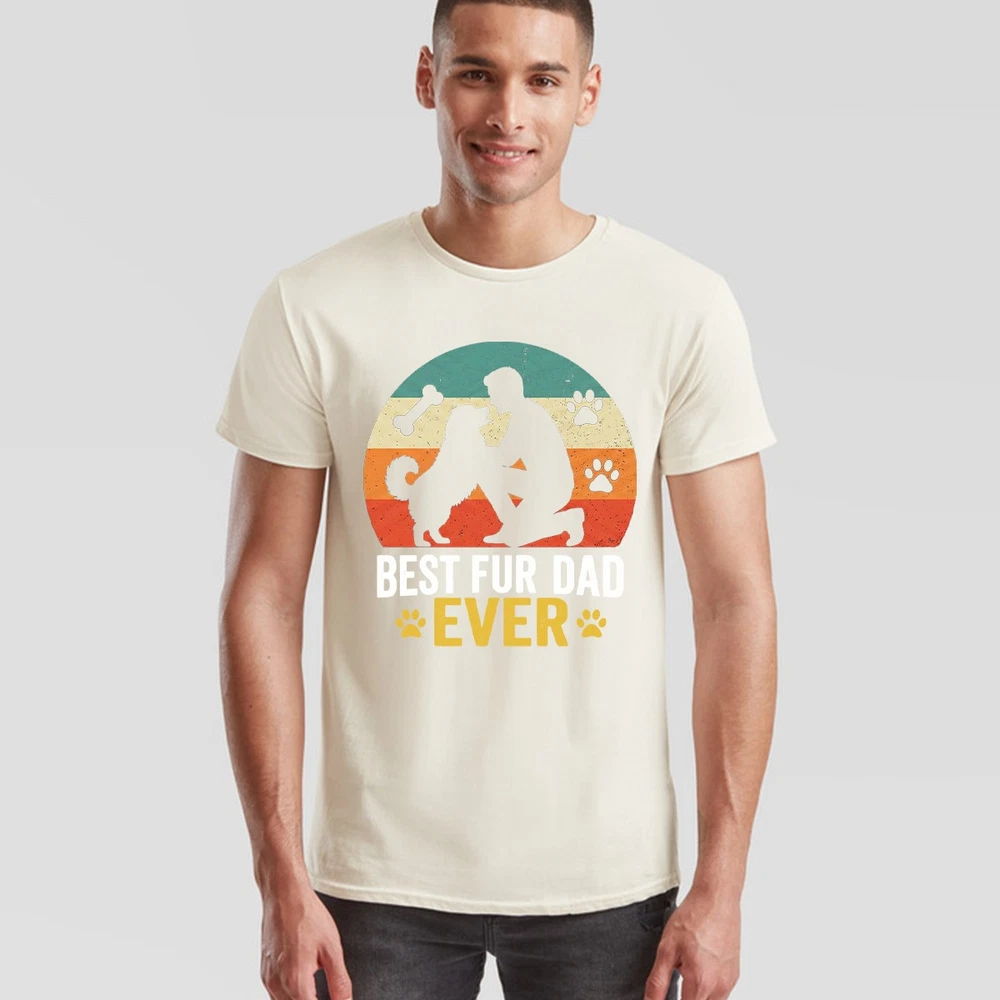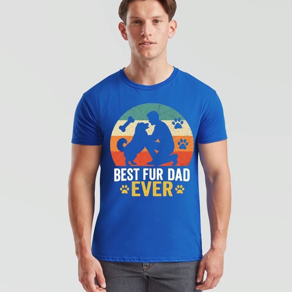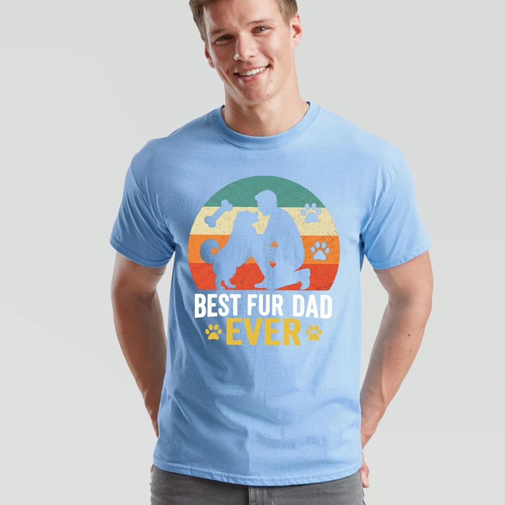 T-Shirt Size Guide T shirt apparel featuring the phrase Fur Dad Pet Owner Dog Cat Lover. A suitable item for celebrating Fathers Day. Available in sizes for men. This comfortable shirt is suitable for casual wear or pet related events. Key Features: 100% Cotton*: Soft, breathable, and comfortable all-day wear. Unisex Regular Fit: Perfect for men, women, and teens. Premium Graphic Print: Vibrant, fade-resistant design that lasts. Crew Neck Short Sleeve: Classic, versatile style. Upgrade your style with our premium unisex graphic t-shirts. Made from 100% cotton, they offer breathable comfort & a regular fit for all body types. Vibrant, durable designs on a classic crew neck. Perfect for men & women, these tees are a must-have for everyday wear or a unique gift. *Ash 99% cotton, 1% polyester *Heather Grey 97% cotton, 3% polyester *Other Heather 50% cotton, 50% polyester. UNISEX T-SHIRT Size Chest to Fit (ins) Width (cm) Length (cm) S 35-37 46 66.5 M 38-40 51 69 L 41-43 56 71.5 XL 44-46 61 74 2XL 47-49 66 76.5 3XL 50-52 73 79 4XL 53-55 78 80.5 5XL 56-58 83 82 Please measure yourself and use these charts to choose the right size. Unless stated all designs are unofficial, buyer inspired designs and not approved or connected with any other company or brand.