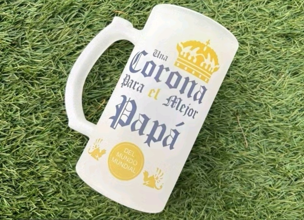 Celebrate Father's Day with this 16oz frosted glass beer mug, featuring a solid clear color with a round shape and decorated with the word "Una Corona." Handmade in the United States, this classic beer mug is the perfect gift to show appreciation for your father. The mug is adorned with "Best Dad" and "Father's Day" themes, making it a unique and thoughtful present for any occasion. Cheers to the special bond between a father and child with this stylish and practical beer glass.