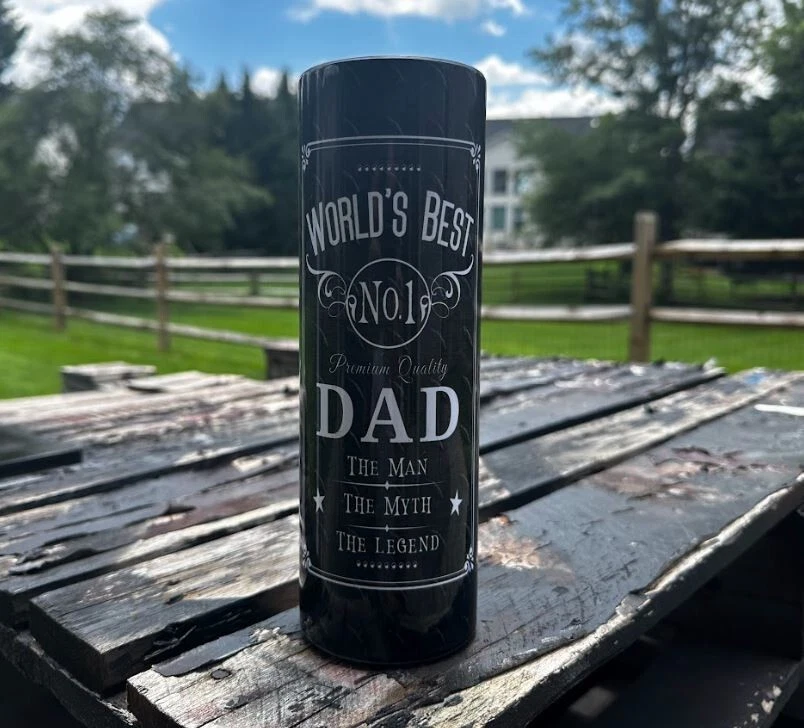 This is a 30oz Fathers Day Hot/Cold Tumbler. Comes with your DAD'S NAME FOR FREE as long as you put the name you want in the Personalization section.