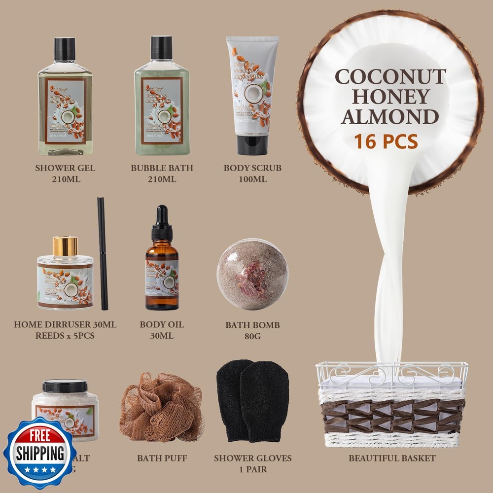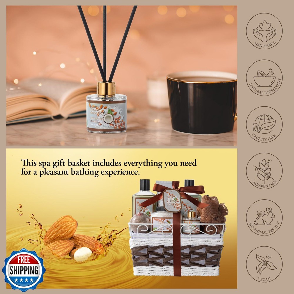 Fathers Day Gifts for Men for Dad Bath and Body Gift Basket For Women and Men Spa Gift Basket Coconut Almond 16 Pcs Bath Gift Set With Fragrant Lotion, Home Spa Luxurious Bath Body Oil, Diffuser and More Features [ Pamper Yourself 16pcs bath gifts for Man & Women ] Our Bath Spa Kit Including: Shower gel, Bubble bath, Bath and Body Jojoba oil, Body Scrub, Bath Spa Salt, 1 pair of Bath Shower Gloves for washing skin, Bath Fizzer Bomb, 5 Pieces Reed Sticks, Foam Bath Puff, Home Fragrance Diffuser, Packaged in a Nice Natural Beautiful Storage Wire Hand-made Basket. Bath Sets for Women & Men Gift 16pcs - Reward the special People in your life with this gift-ready pamper set. Mother's & Father's day gift basket [ Bath and Body Gift Box for Women & Men Gift of Relax Bath time ] The Shower Set Are All Formulated with Soothing Shea Butter and Scented of Sweet Almomd & Warm Coconut Scents, Enriched in Coconut oil, and Lavender Oil to Protect Your Skin.The Moisturizing Essential Oil Can Hydrating & Protecting Your Body. Also Home Reed Diffuser Creating a Soothing & Coming Home Long- lasts Fragrance.Put The Home Reed Diffuser Set Fragrance Diffuser At Your Bedside, Which Can Not Only Effectively Purify The Air [ Best Luxury Honey Almond & Coconut Body Wash Spa Set ] bath gift set for women and mens No need to wrap as it is ready to gift. Cool Off With This Honey Almond-Scented Bath Gift Set From Fresh And Warm, Which Also Has Shea Butter And Vitamins C To Help Nourish The Skin. A Perfect Basket Also Gives It Major Gifting Appeal. Our Bath Salts & Shower Bath Bomb Scents Make For The Perfect At-Home Pampering Essentials. Our Bath Spa Kit is a Wonderful present, Can Be Given To Your Precious People, They Can Be Opened, Which Can Bring Better Fragrance, And Look More Atmospheric And Beautiful [ Ideal Gift Sets spa gift baskets for women and men ] Great Gift Baskets For Men Or Women On Valentine'S Day, Mother'S Day, Father'S Day, Anniversary, Birthday, Christmas.Suit For Any Occasion,Wedding, Birthday, Christmas,Holidays, Housewarming, Congratulations, Get Well, Graduation, Love & Romance, Retirement, Seasonal, Sports Fan, Spring, Thank You gifts, Easter Basket for Women. Everyone Would Love It.Baskets Are Beautiful And Reusable! It Can Be Placed In The Bathroom, Used As A Storage Basket, Or Used As A Picnic Basket. Mother's Day Gift for Mom [ Bath Sets spa kit for women gift set] We All Love To Enjoy A Relax Spa,It Can Be A Romantic Bath Gift Kit It Delivers The Gift Of A Luxurious Spa Experience At Home To The One You Love. Our Fantastic Spa Self Care Kit for Women Contains Everything You Need To Create The Perfect Evening. Bring a smile to your Girlfriend, Boyfriend, Husband, Wife, Father, Mother, Daughter, Son or Beloved Ones. It is the Ultimate Gifts for women and men Shipping Free & Fast Shipping: We offer free shipping to most of the USA with a normal delivery time of 3-7 days. However, due to the current situation, additional delivery time (up to 3 weeks) may be required for some items. Alternative Carriers: We may use alternative carriers (e.g., USPS, FedEx, UPS) to ensure your package arrives safely and on time. Due to the use of multiple carriers, we are unable to provide a tracking number automatically. Handling Time: Orders are processed and shipped within 1-2 business days of receiving cleared payment. Shipping Restrictions: Shipping to Alaska, Hawaii, Puerto Rico, Guam, and other US territories may incur shipping charges or delivery restrictions. Please contact us before ordering, or your order can be refunded/cancelled. State Restrictions: Certain items may not be shipped to California due to state regulations. Contact for Tracking Updates: If you require tracking updates or have any concerns about the delivery of your order, please feel free to contact us, and we will be happy to assist you. Return Policy 30-Day Hassle-Free Returns: If you are not completely satisfied with your purchase, you can return the item for free within 30 days of receiving it for a full refund or exchange. Easy Return Process: Contact us, and we will provide you with a prepaid return shipping label and detailed instructions. No Restocking Fee: There are no restocking fees for returns. However, the buyer is responsible for return shipping costs if the return is not due to a seller"s error. Refund Processing: Refunds will be processed within 1 business day of receiving the returned item in its original condition. Feedback Your feedback is extremely important to us. We strive to provide the best products and customer service possible. If you are satisfied with your purchase, please take a moment to leave us a positive review. If you have any concerns or issues with your order, please contact us before leaving negative feedback. We are committed to resolving any problems and ensuring your satisfaction. Contact Us If you have any questions or concerns, please feel free to reach out to our customer support team. You can contact us through the eBay messaging system. We are available Monday to Friday, 9:00 am to 5:00 pm EST, and we will do our best to respond to your inquiry within 24 hours. Thank you for supporting our small family business!